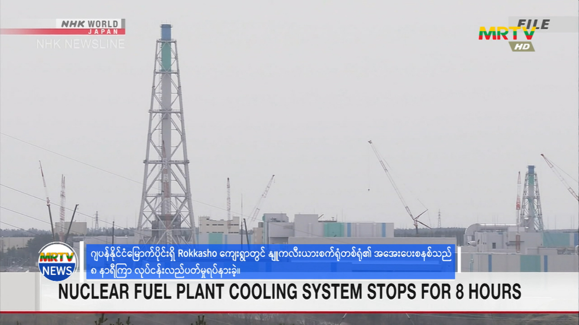 ဂျပန်နိုင်ငံမြောက်ပိုင်း Rokkasho ကျေးရွာတွင် စက်ရုံတစ်ရုံ၏ အအေးပေးစနစ်သည် (၈)နာရီကြာ လုပ်ငန်းလည်ပတ်မှု ရပ်နားခဲ့ Monday, July 04, 2022 Monday, July 04, 2022