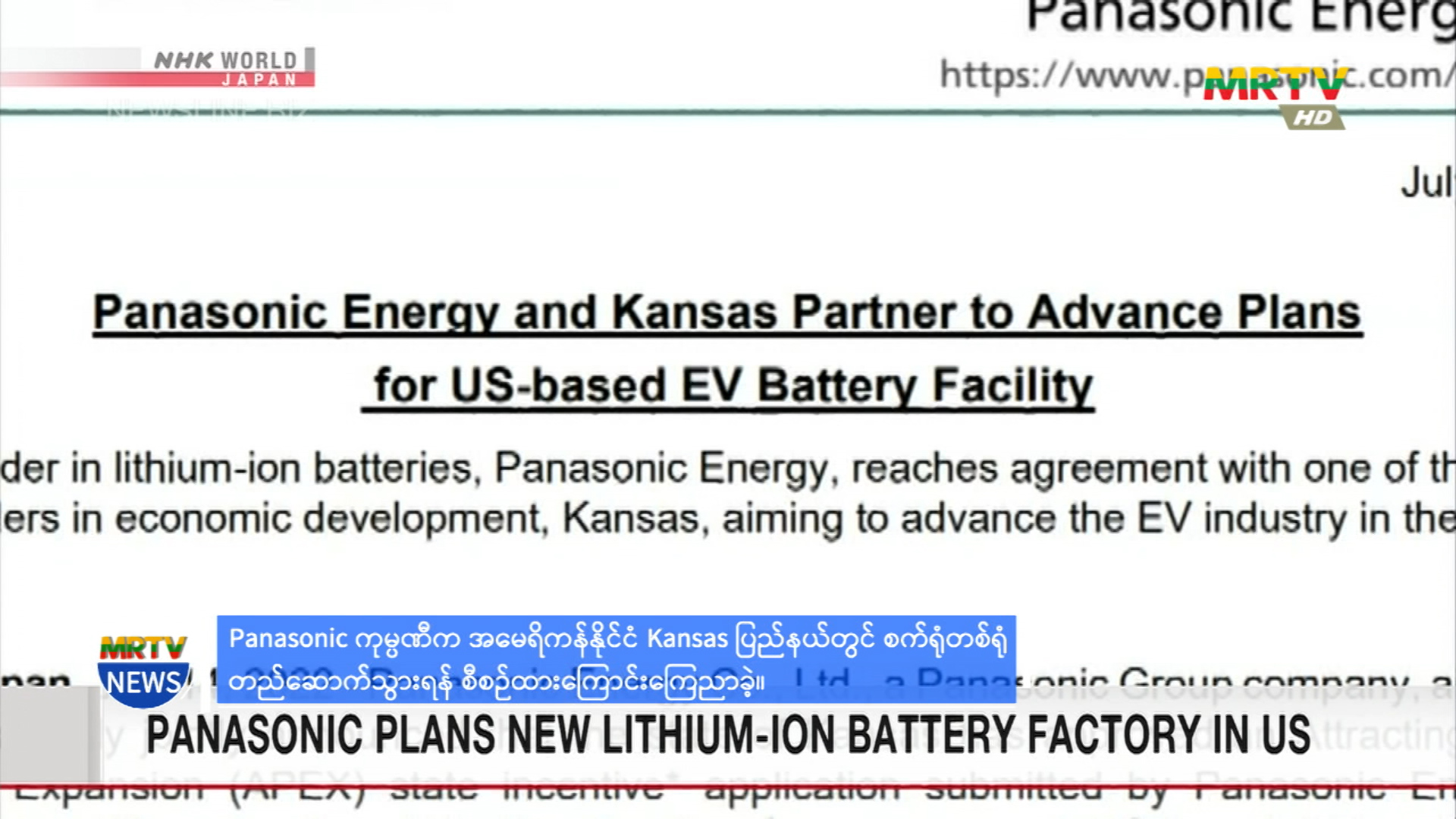 Panasonic ကုမ္ပဏီက အမေရိကန်နိုင်ငံ Kansas ပြည်နယ်တွင် စက်ရုံတစ်ရုံ တည်ဆောက်သွားရန် စီစဉ်ခဲ့ Friday, July 15, 2022 Friday, July 15, 2022