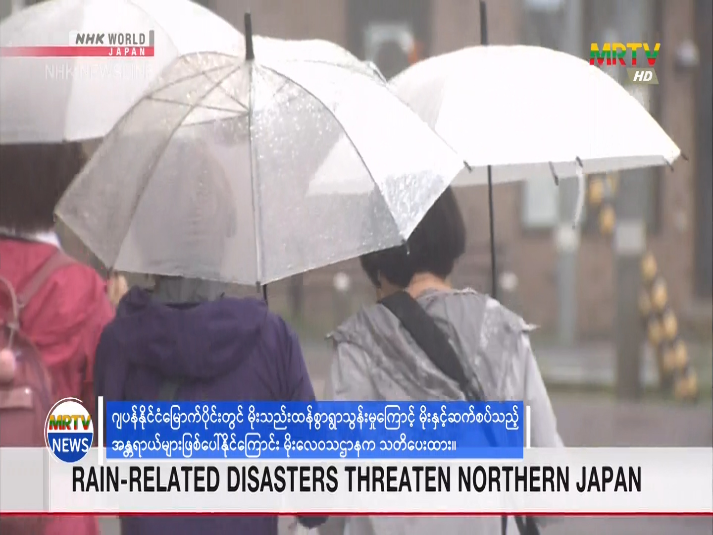 ဂျပန်နိုင်ငံ မြောက်ပိုင်းတွင် မိုးသည်းထန်စွာရွာသွန်းမှုကြောင့် မိုးနှင့်ဆက်စပ်သည့် အန္တရာယ်များဖြစ်ပေါ်နိုင်ကြောင်း မိုးလေဝသဌာနက သတိပေးထား Monday, July 18, 2022 Monday, July 18, 2022
