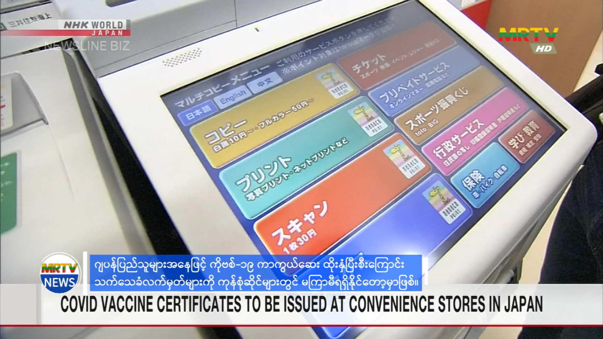 ဂျပန်ပြည်သူများအနေဖြင့် ကိုဗစ်-၁၉ ကာကွယ်ဆေး ထိုးနှံပြီးစီးကြောင်းသက်သေခံလက်မှတ်များကို ကုန်စုံဆိုင်များမှာ မကြာခင် ရရှိနိုင်တော့မည်ဖြစ် Thursday, July 21, 2022 Thursday, July 21, 2022