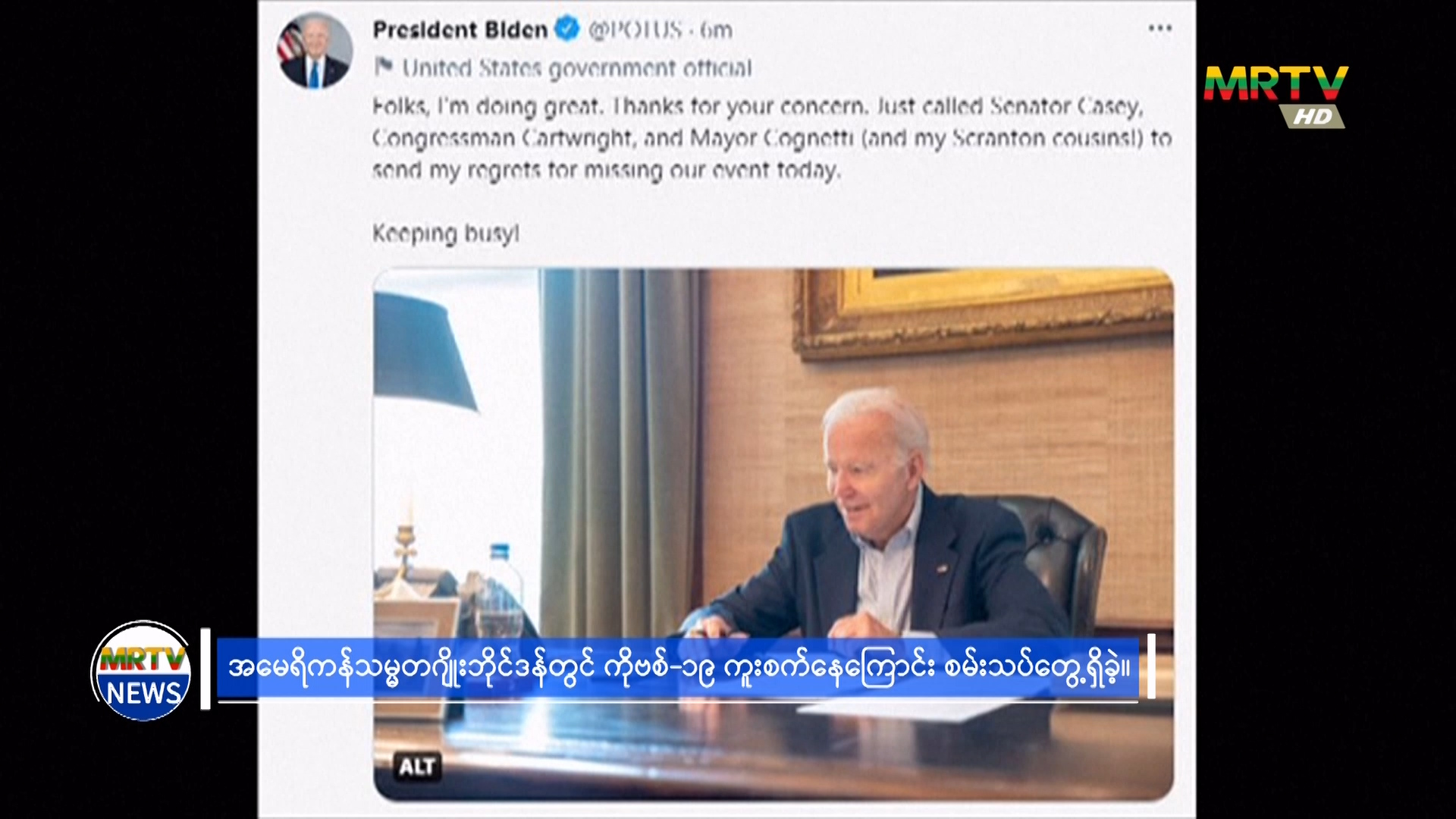 အမေရိကန်သမ္မတဂျိုးဘိုင်ဒန်တွင် ကိုဗစ်-၁၉ ကူးစက်နေကြောင်း စမ်းသပ်တွေ့ရှိခဲ့ Friday, July 22, 2022 Friday, July 22, 2022