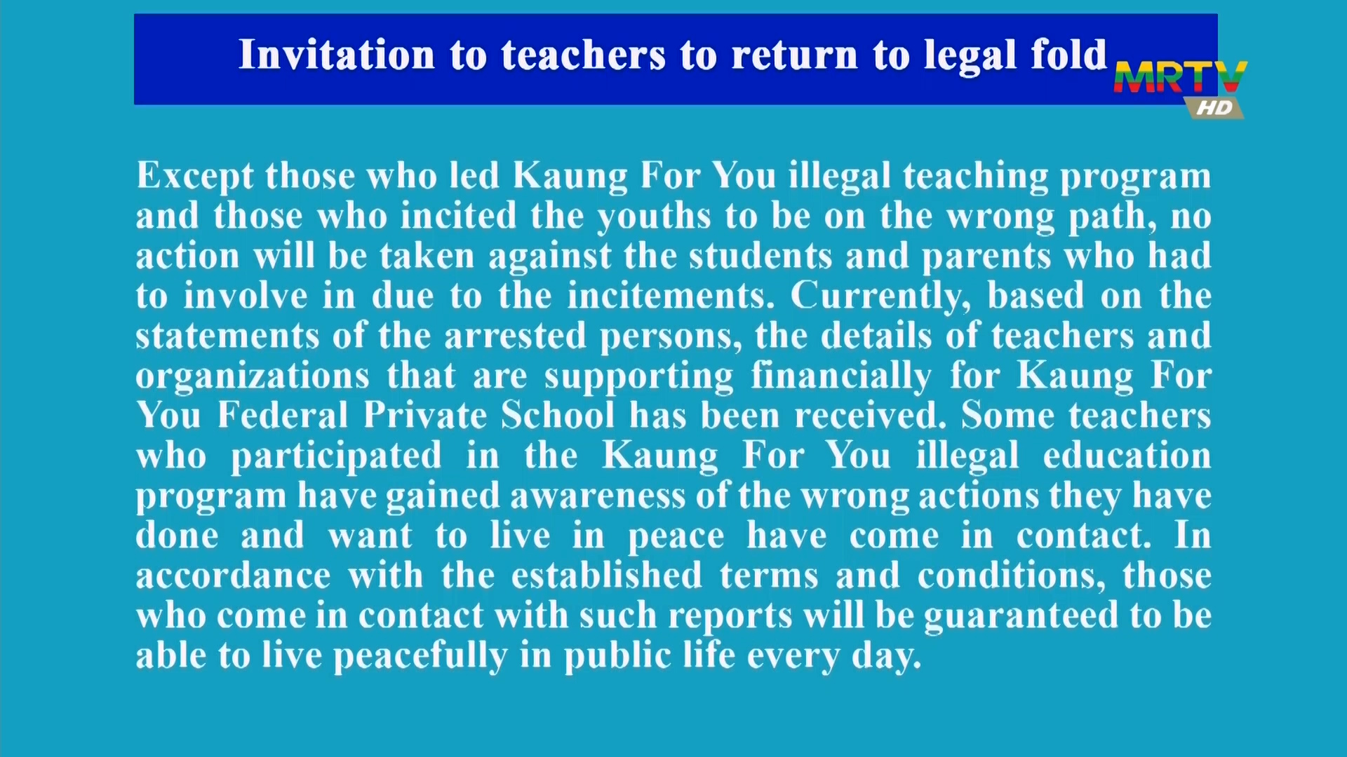 Invitation to teachers to return to legal fold