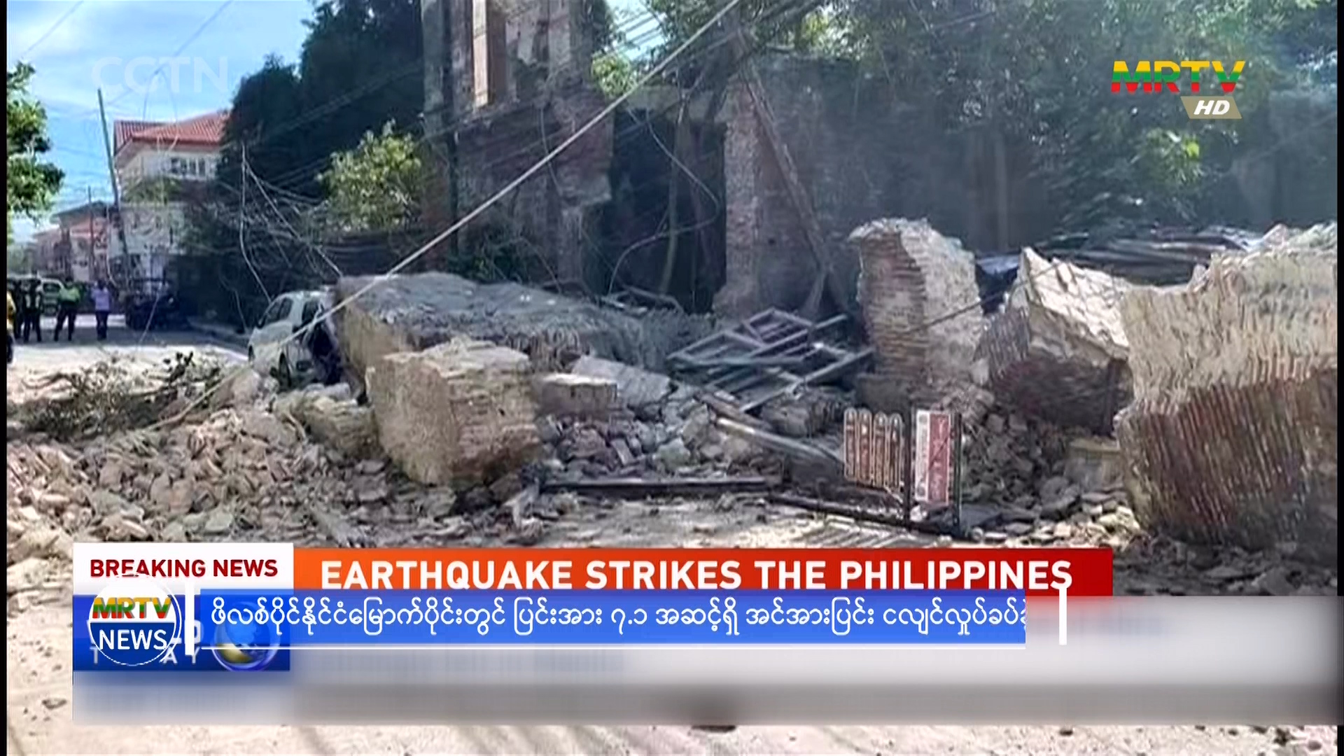 ဖိလစ်ပိုင်နိုင်ငံမြောက်ပိုင်းမှာ ပြင်းအား ၇.၁ အဆင့်ရှိ အင်အားပြင်း ငလျင်လှုပ်ခတ်ခဲ့