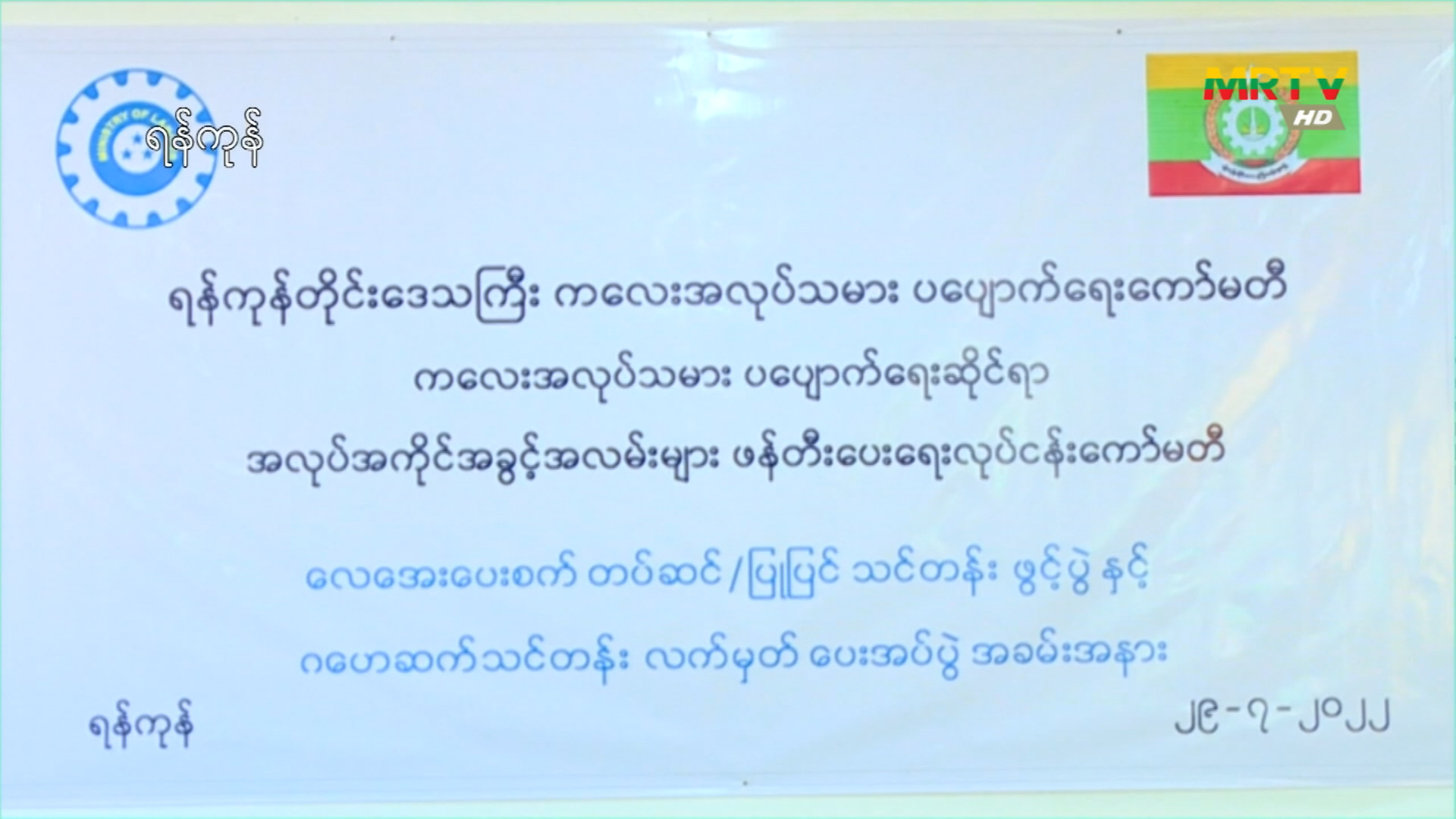 ရန်ကုန်တိုင်းဒေသကြီး ကလေးအလုပ်သမားပပျောက်ရေးကော်မတီမှ ကြီးမှူးဖွင့်လှစ်သည့် လေအေးပေးစက် တပ်ဆင်ပြုပြင်သင်တန်းဖွင့်ပွဲနှင့် ဂဟေဆက်သင်တန်း လက်မှတ်ပေးအပ်ပွဲကျင်းပ Friday, July 29, 2022 Friday, July 29, 2022