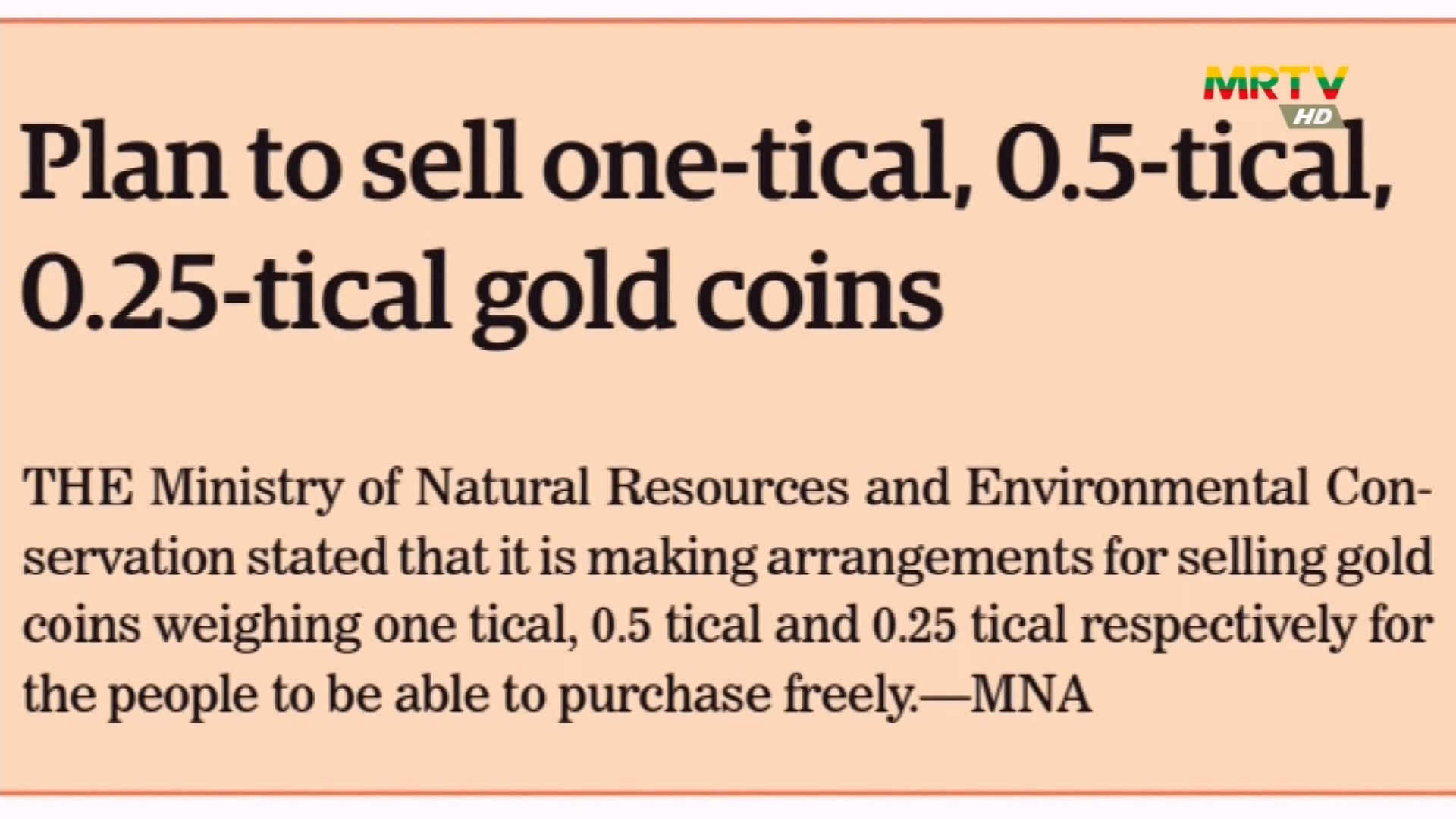 Plan to sell one-tical, 0.5-tical, 0.25-tical gold coins Friday, September 02, 2022 Friday, September 02, 2022