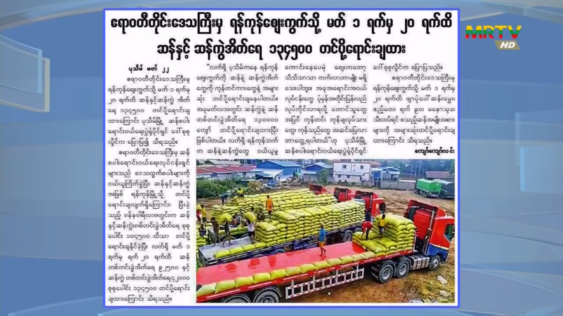 ဧရာဝတီတိုင်းဒေသကြီးမှ ရန်ကုန်ဈေးကွက်သို့ မတ် ၁ ရက်မှ ၂၀ ရက်ထိ ဆန်နှင့် ဆန်ကွဲအိတ်ရေ ၁၃၄၅၀၀ တင်ပို့ရောင်းချထား Friday, March 24, 2023