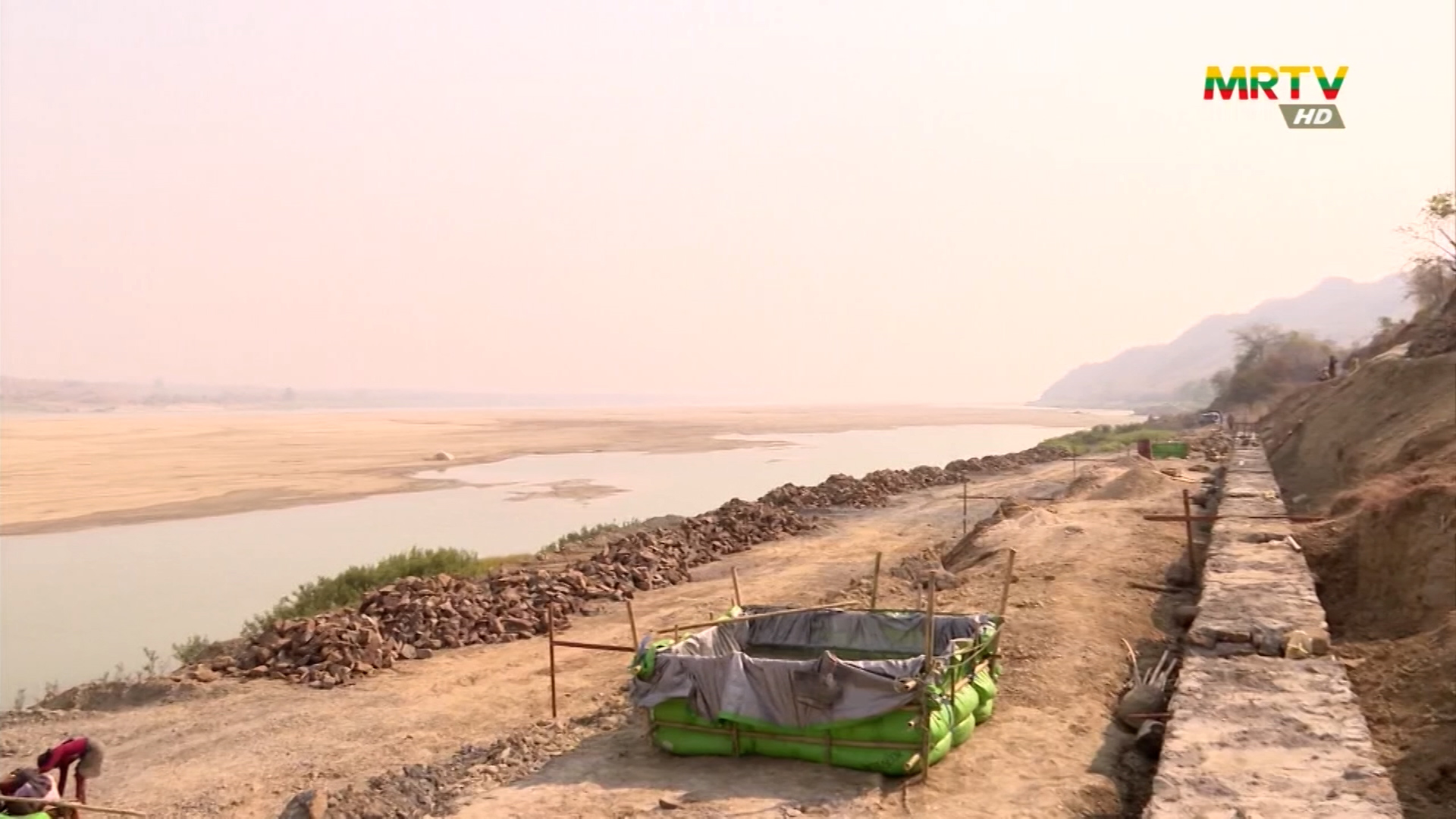မကွေးတိုင်းဒေသကြီး၊ သရက်မြို့ရှိ ဧရာဝတီမြစ်အား ဖြတ်ကျော်တည်ဆောက်ထားသည့် မြစ်ဖြတ်ကျော် လျှပ်စစ်တာဝါတိုင်အား မြစ်ရေတိုက်စားမှုမှ ကာကွယ်ရန်အတွက် ကမ်းပြိုကာကွယ်ရေးလုပ်ငန်းများ ဆောင်ရွက်လျက်ရှိ Saturday, March 25, 2023
