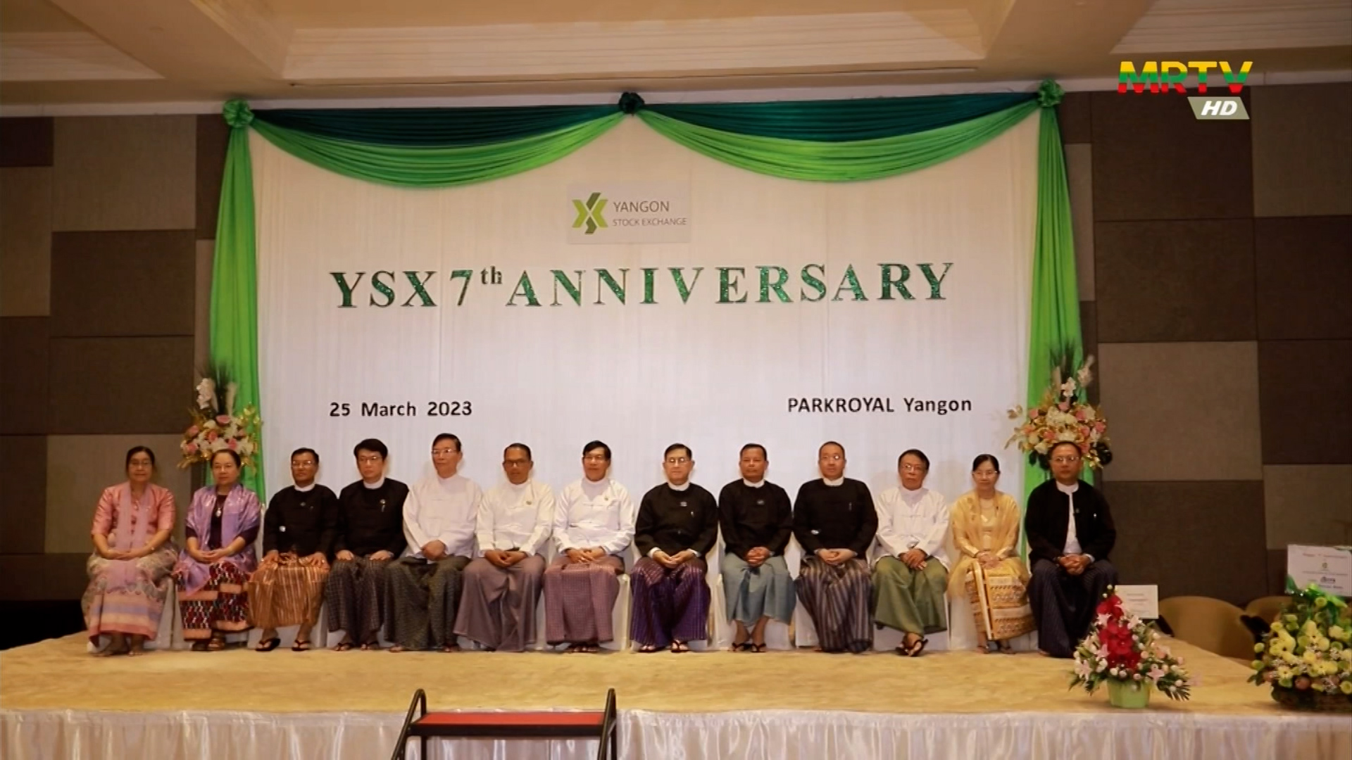 ရန်ကုန်တိုင်းဒေသကြီး ဝန်ကြီးချုပ် ဦးစိုးသိန်း၊ စီမံကိန်းနှင့် ဘဏ္ဍာရေးဝန်ကြီးဌာန၊ ဒုတိယဝန်ကြီး ဦးမောင်မောင်ဝင်း ရန်ကုန်စတော့အိပ်ချိန်း၏ (၇)နှစ်မြောက် နှစ်ပတ်လည်နေ့ အခမ်းအနားသို့ တက်ရောက်
