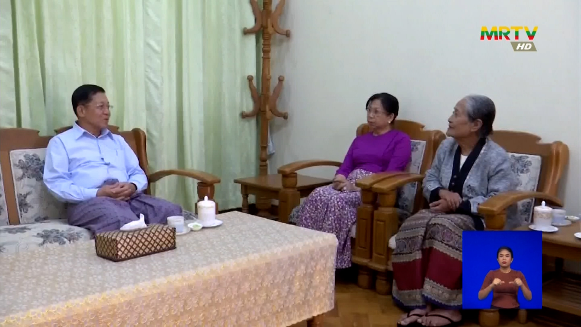 နိုင်ငံတော် စီမံအုပ်ချုပ်ရေးကောင်စီ ဥက္ကဋ္ဌ တပ်မတော်ကာကွယ်ရေး ဦးစီးချုပ် ဗိုလ်ချုပ်မှူးကြီး မင်းအောင်လှိုင်နှင့်ဇနီး ဒေါ်ကြူကြူလှ (၇၈) နှစ်မြောက် တပ်မတော်နေ့ အခမ်းအနားသို့ တက်ရောက်ကြမည့် အငြိမ်းစား တပ်မတော်အရာရှိကြီးများအား သွားရောက်တွေ့ဆုံဂါရဝပြုနှုတ်ဆက်