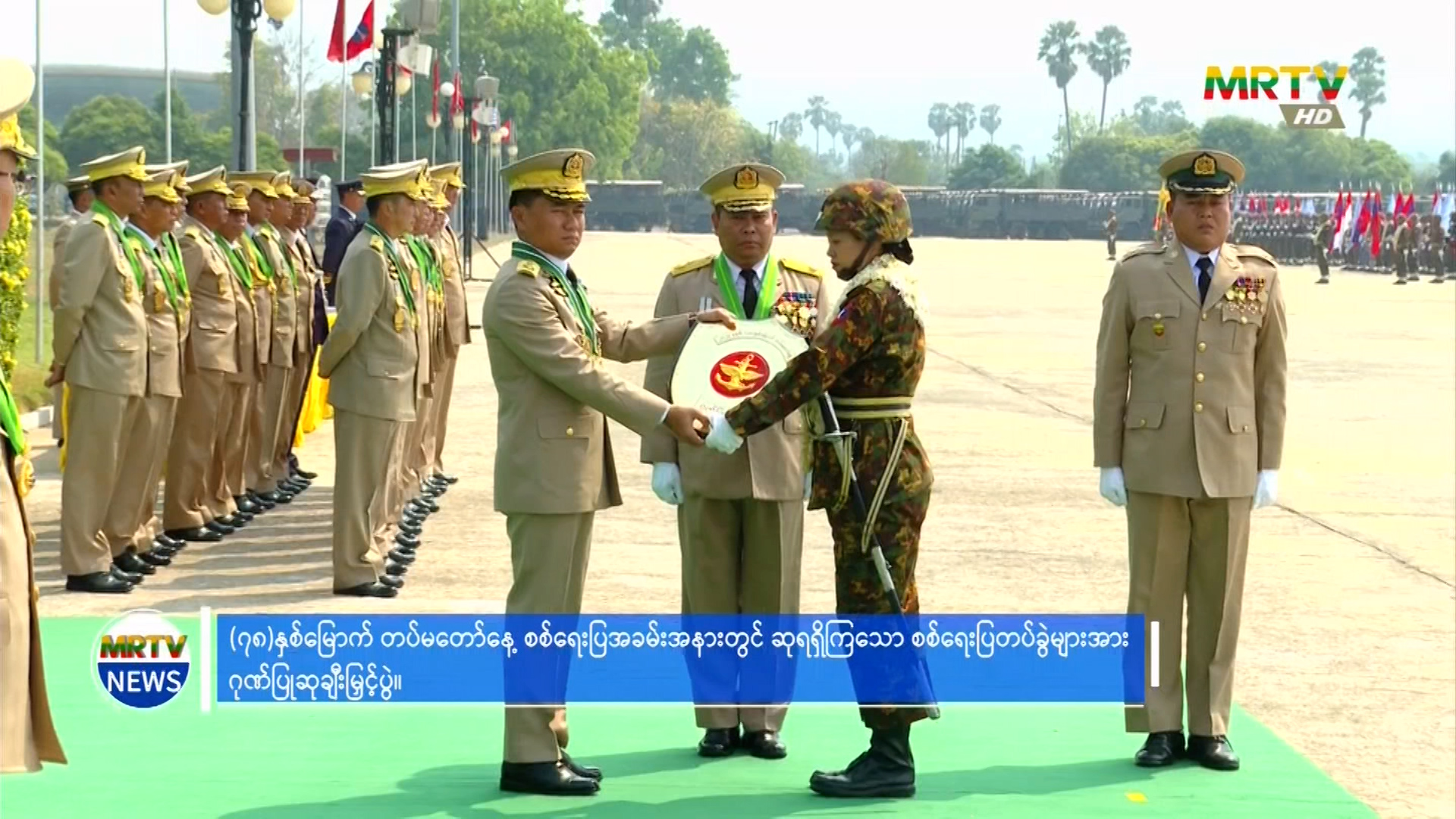 တပ်မတော်နေ့ကျင်းပရေး ဦးစီးကော်မတီ ဥက္ကဋ္ဌ ညှိနှိုင်းကွပ်ကဲရေးမှူး (ကြည်း၊ရေ၊လေ) ဗိုလ်ချုပ်ကြီး မောင်မောင်အေး ၂၀၂၃ ခုနှစ်၊ (၇၈)နှစ်မြောက် တပ်မတော်နေ့ စစ်ရေးပြ အခမ်းအနားတွင် ဆုရရှိခဲ့ကြသော စစ်ရေးပြတပ်ခွဲများအား ဂုဏ်ပြုဆုချီးမြှင့်ပွဲသို့ တက်ရောက် Monday, March 27, 2023