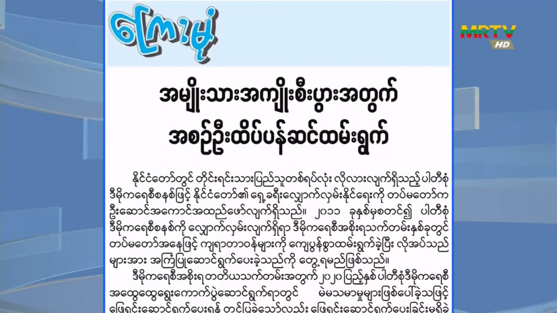 Hluttaw Channel Schedule