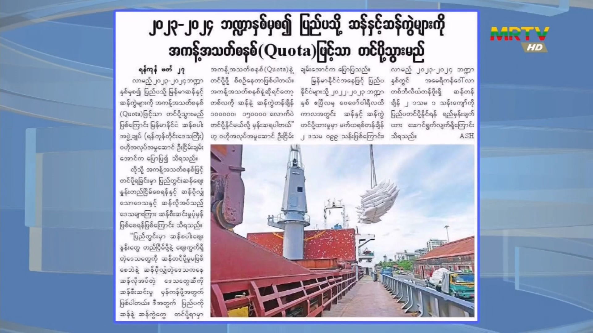 ၂၀၂၃-၂၀၂၄ ဘဏ္ဍာနှစ်မှစ၍ ပြည်ပသို့ ဆန်နှင့်ဆန်ကွဲများကို အကန့်အသတ်စနစ် (Quota) ဖြင့်သာ တင်ပို့သွားမည် Wednesday, March 29, 2023