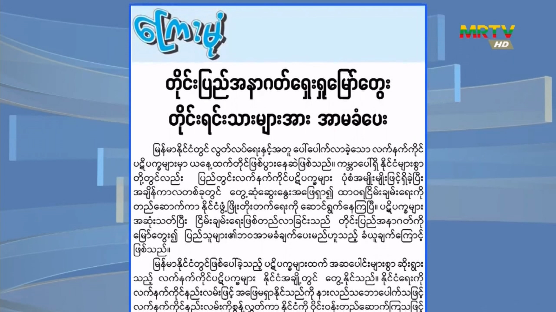 တိုင်းပြည်အနာဂတ်ရှေးရှုမြော်တွေး တိုင်းရင်းသားများအား အာမခံပေး