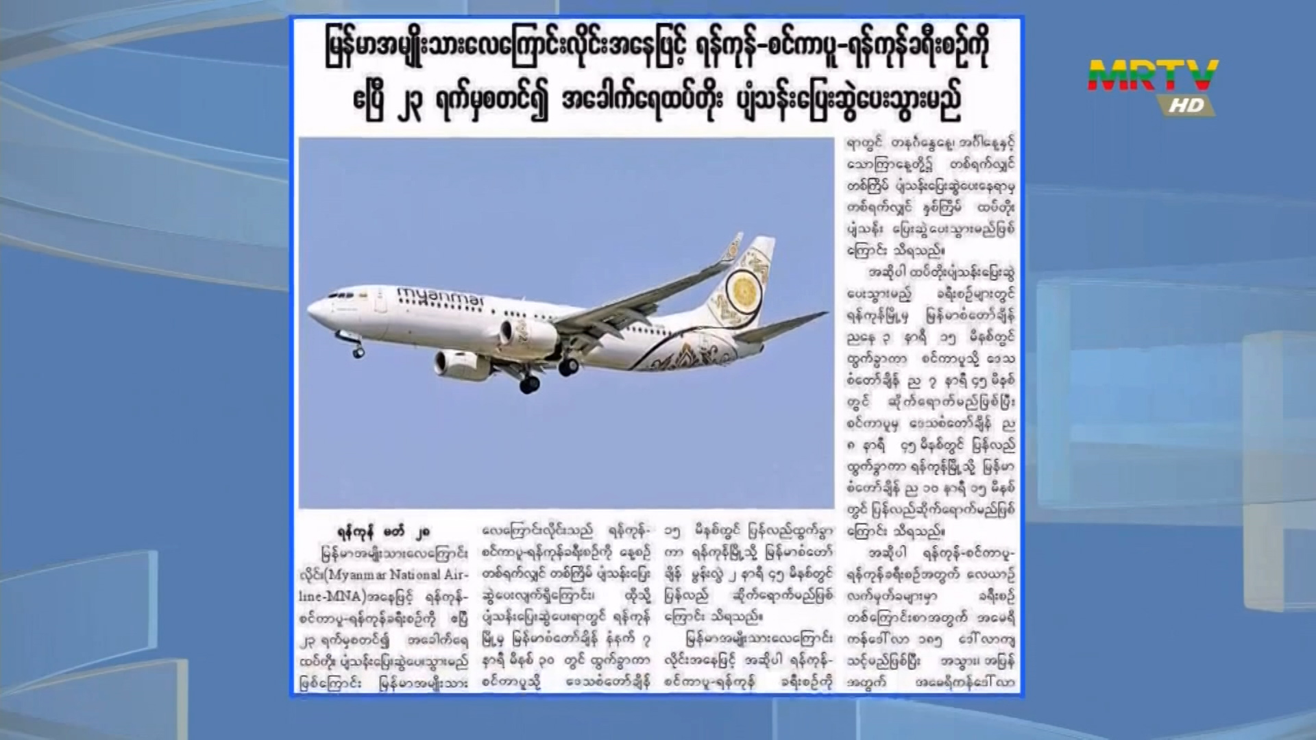မြန်မာအမျိုးသားလေကြောင်းလိုင်းအနေဖြင့် ရန်ကုန်-စင်ကာပူ-ရန်ကုန် ခရီးစဉ်ကို ဧပြီ (၂၃) ရက်မှစတင်၍ အခေါက်ရေထပ်တိုး ပျံသန်းပြေးဆွဲပေးသွားမည် Thursday, March 30, 2023