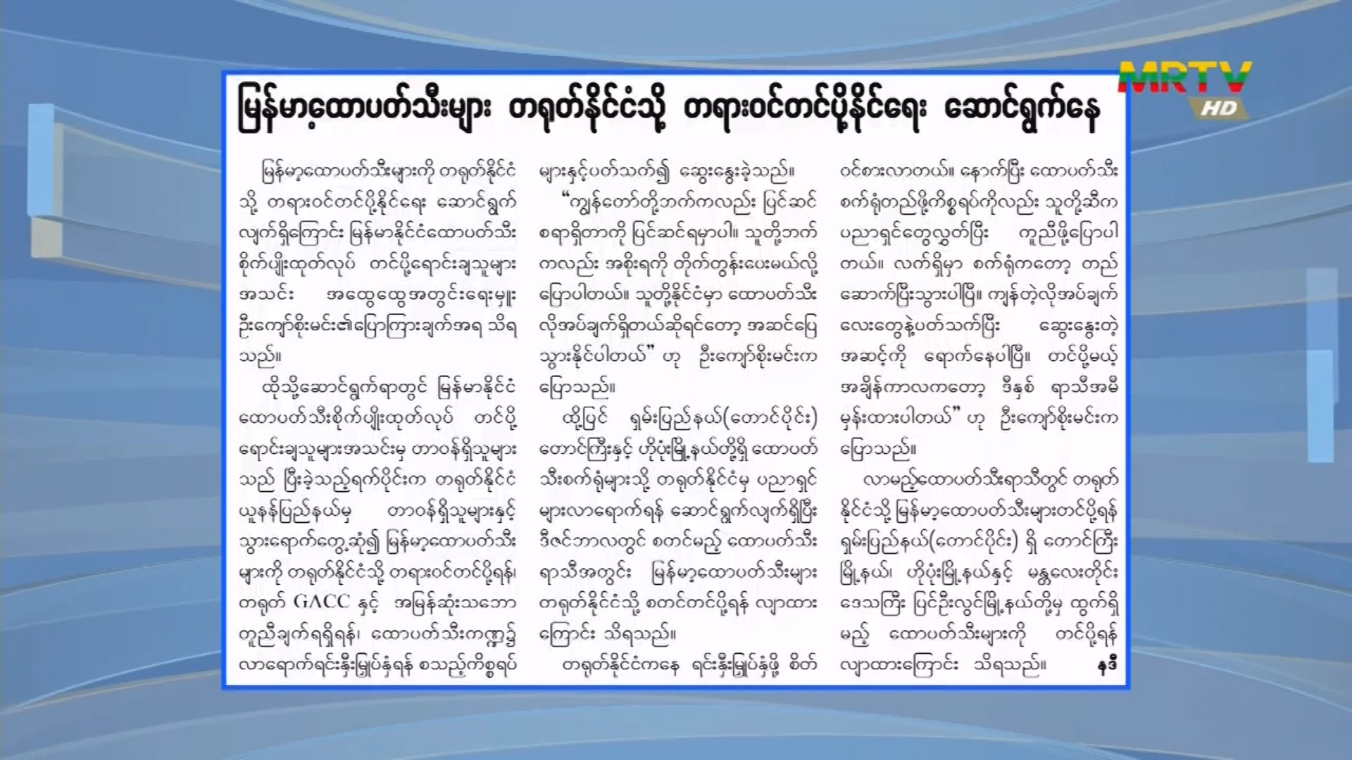 မြန်မာ့ထောပတ်သီးများ တရုတ်နိုင်ငံသို့ တရားဝင်တင်ပို့နိုင်ရေး ဆောင်ရွက်နေ