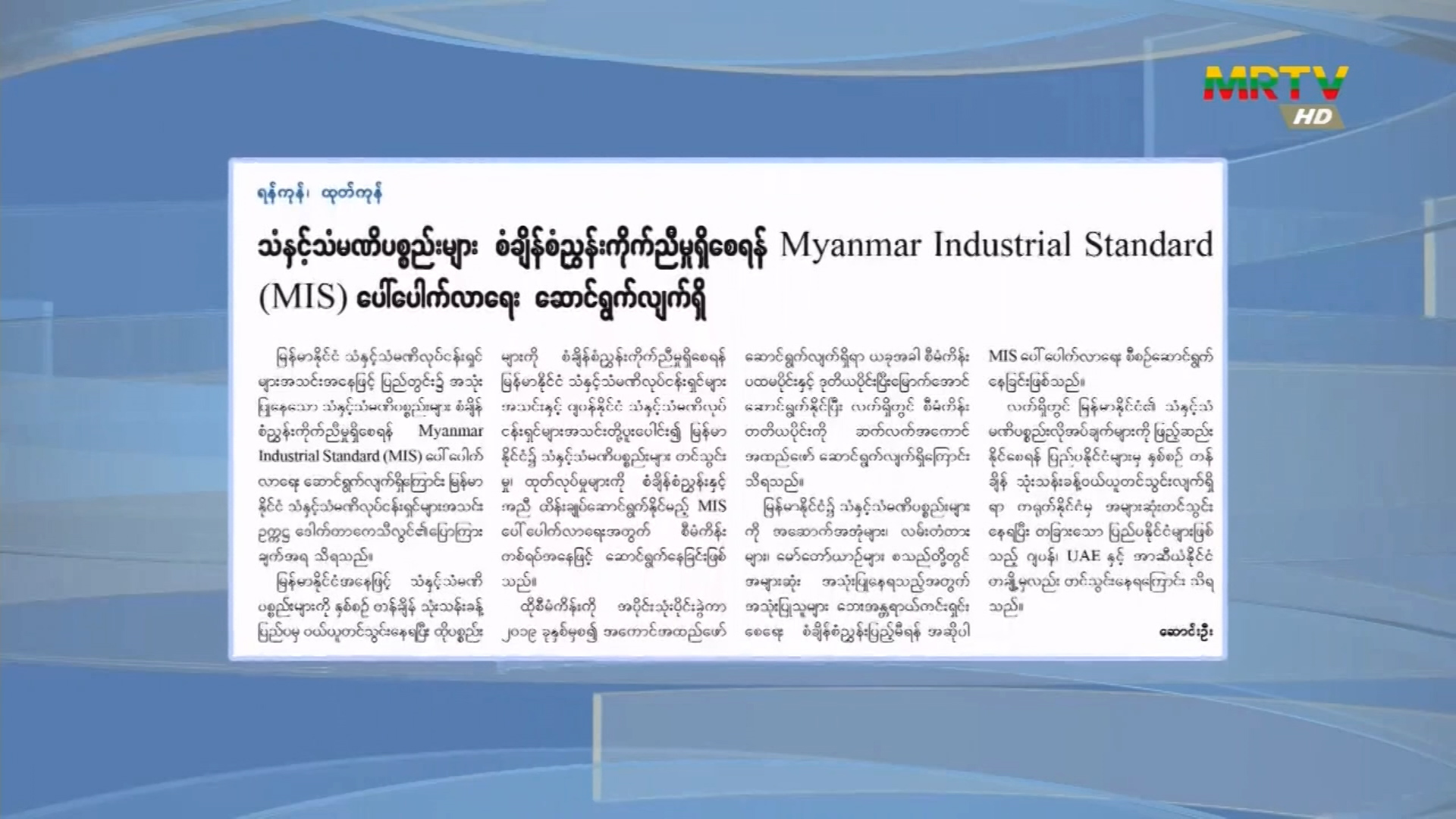 သံနှင့် သံမဏိပစ္စည်းများ စံချိန်စံညွန်းကိုက်ညီမှုရှိစေရန် Myanmar Industrial Standard (MIS) ပေါ်ပေါက်လာရေး ဆောင်ရွက်လျက်ရှိ