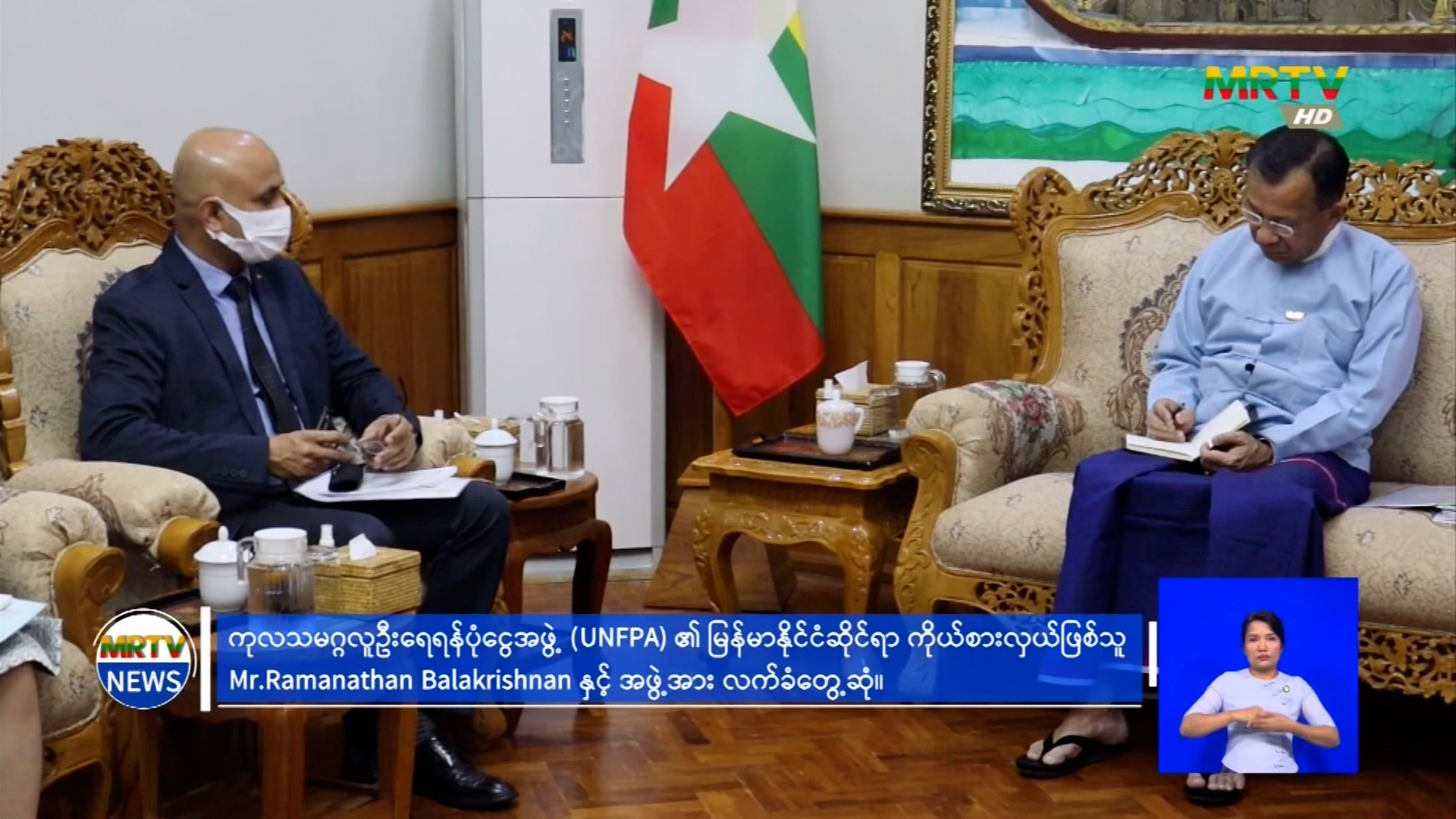 ရင်းနှီးမြှုပ်နှံမှုနှင့် နိုင်ငံခြားစီးပွားဆက်သွယ်ရေး ဝန်ကြီးဌာန၊ ပြည်ထောင်စုဝန်ကြီး ဒေါက်တာကံဇော် ကုလသမဂ္ဂ လူဦးရေရန်ပုံငွေအဖွဲ့ (UNFPA) ၏ မြန်မာနိုင်ငံဆိုင်ရာ ကိုယ်စားလှယ်ဖြစ်သူ Mr. Ramanathan Balakrishnan နှင့် အဖွဲ့အား လက်ခံတွေ့ဆုံ