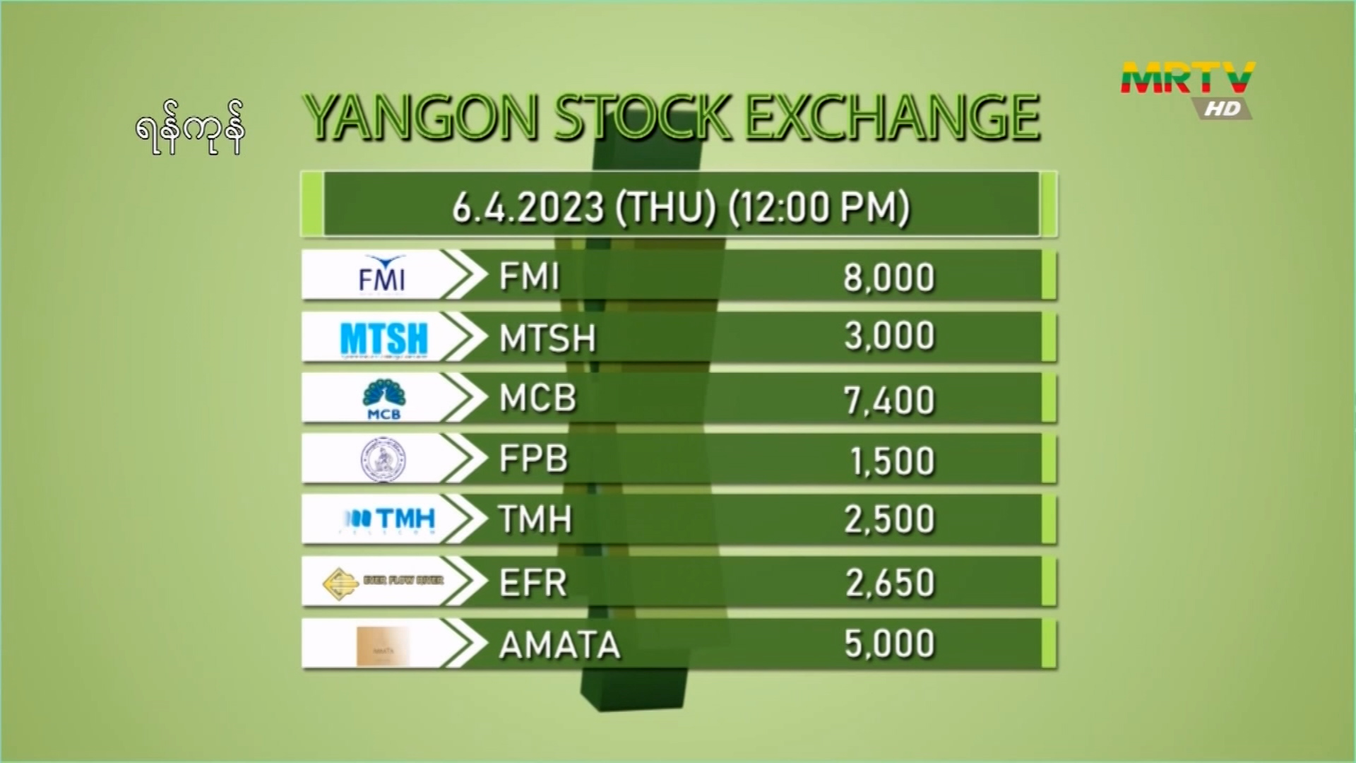 Yangon Stock Exchange စျေးကွက်အခြေအနေ (၆-၄-၂၀၂၃)