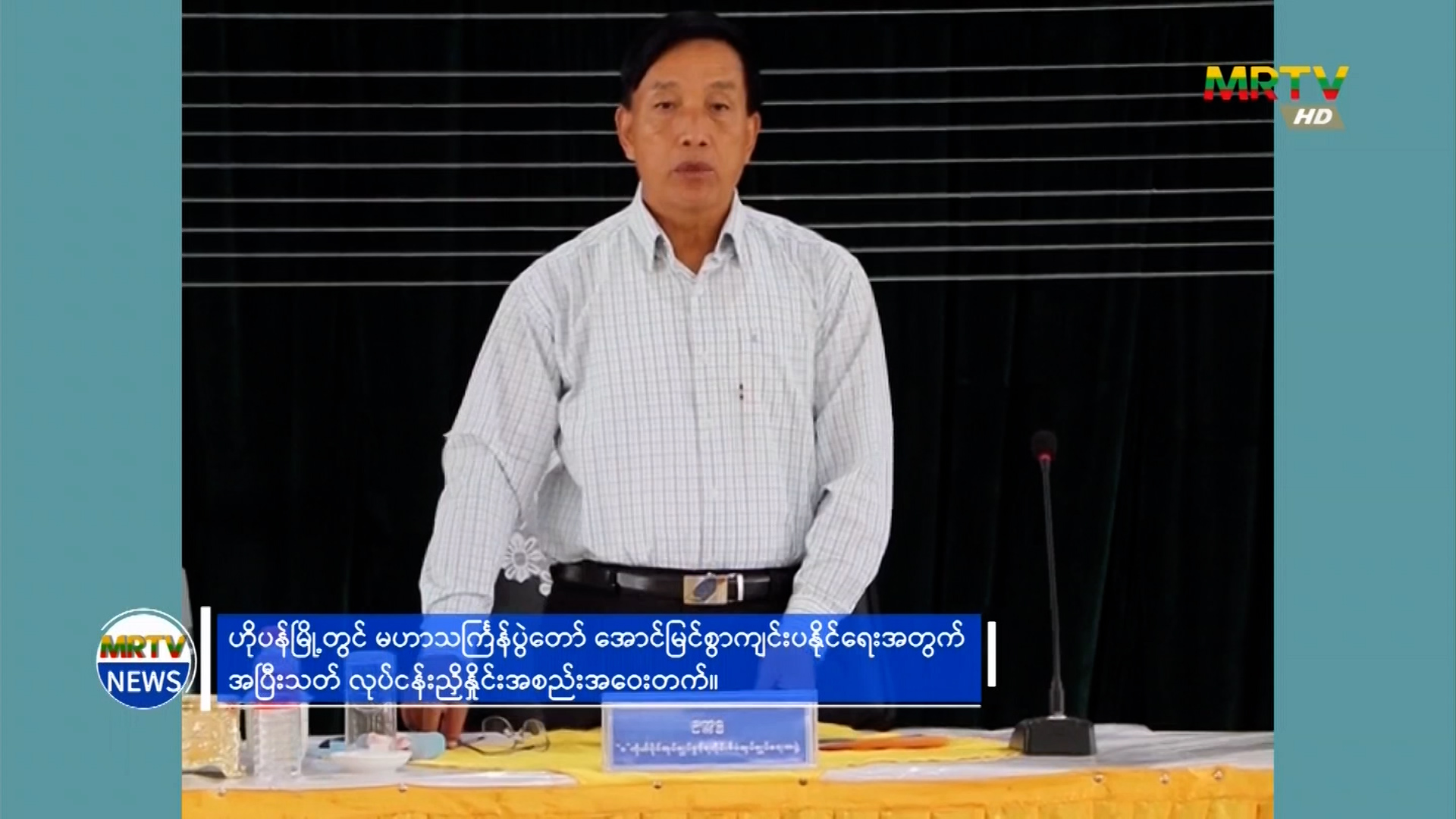 ဝ ကိုယ်ပိုင်အုပ်ချုပ်ခွင့်ရတိုင်း စီမံအုပ်ချုပ်ရေးအဖွဲ့ ဥက္ကဋ္ဌ ဦးညီနပ် ဟိုပန်မြို့တွင် မဟာသင်္ကြန်ပွဲတော် အောင်မြင်စွာ ကျင်းပနိုင်ရေးအတွက် အပြီးသတ် လုပ်ငန်းညှိနှိုင်း အစည်းအဝေးသို့ တက်ရောက် Thursday, April 06, 2023
