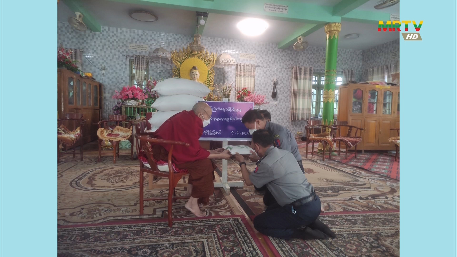 ပြည်ထဲရေးဝန်ကြီးဌာန မိသားစုများက ဆွမ်းဆန်တော်နှင့် ဆန်ကြာဆံများအား ဆက်ကပ်လှူဒါန်းခြင်းများ ဆောင်ရွက်