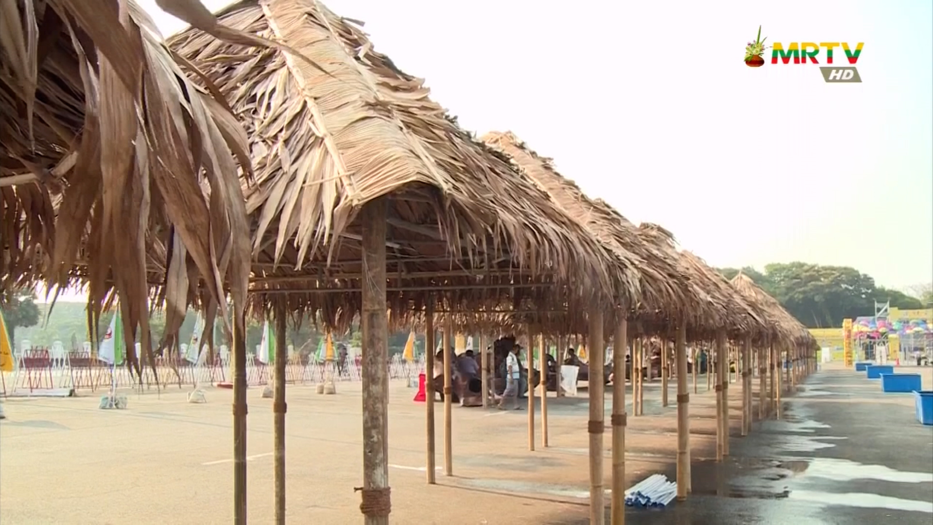 ပြည်သူ့ရင်ပြင်ရှိ လမ်းလျှောက်သင်္ကြန်တွင် ရောင်စုံထီးအရိပ်များအပြင် မြန်မာ့ရိုးရာ ထန်းလက်တဲများတွင်လည်း အနားယူအပန်းဖြေနိုင်မည်ဖြစ် Wednesday, April 12, 2023