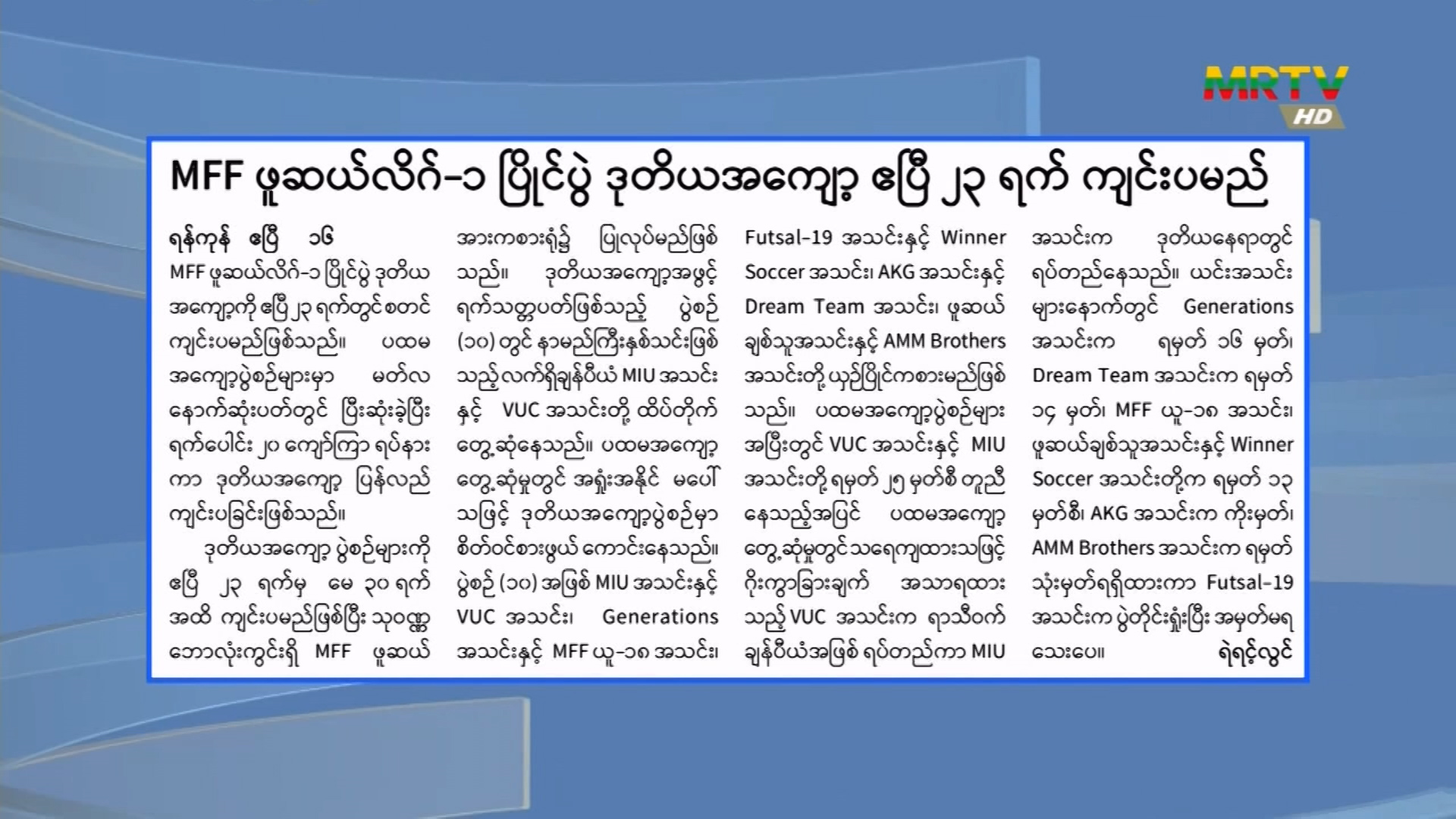 MFF ဖူဆယ်လိဂ်-၁ ပြိုင်ပွဲ ဒုတိယအကျော့ ဧပြီ ၂၃ ရက်ကျင်းပမည်