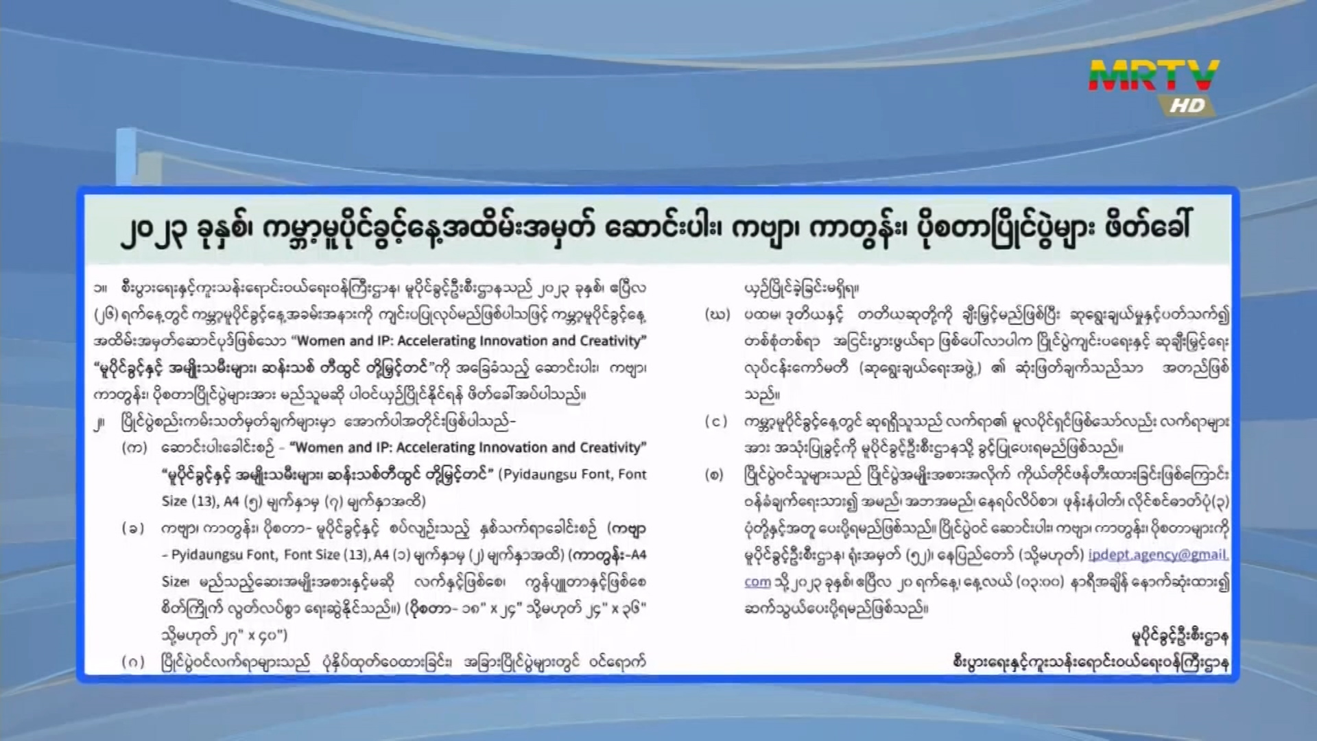 ၂၀၂၃ ခုနှစ်၊ ကမ္ဘာ့မူပိုင်ခွင့်နေ့အထိမ်းအမှတ် ဆောင်းပါး၊ ကဗျာ၊ ကာတွန်း၊ ပိုစတာပြိုင်ပွဲများ ဖိတ်ခေါ် Wednesday, April 19, 2023