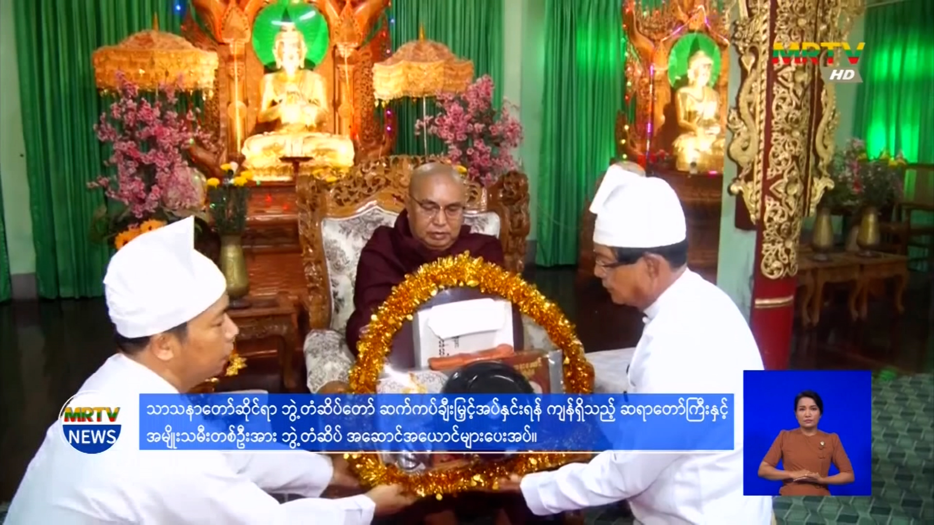 ရန်ကုန်တိုင်းဒေသကြီး ဝန်ကြီးချုပ် ဦးစိုးသိန်း သာသနာတော်ဆိုင်ရာ ဘွဲ့တံဆိပ်တော် ဆက်ကပ်ချီးမြှင့် အပ်နှင်းရန်ကျန်ရှိသည့် ဆရာတော်ကြီးနှင့် အမျိုးသမီးတစ်ဦးအား ဘွဲ့တံဆိပ် အဆောင်အယောင်များ ပေးအပ် Wednesday, April 19, 2023
