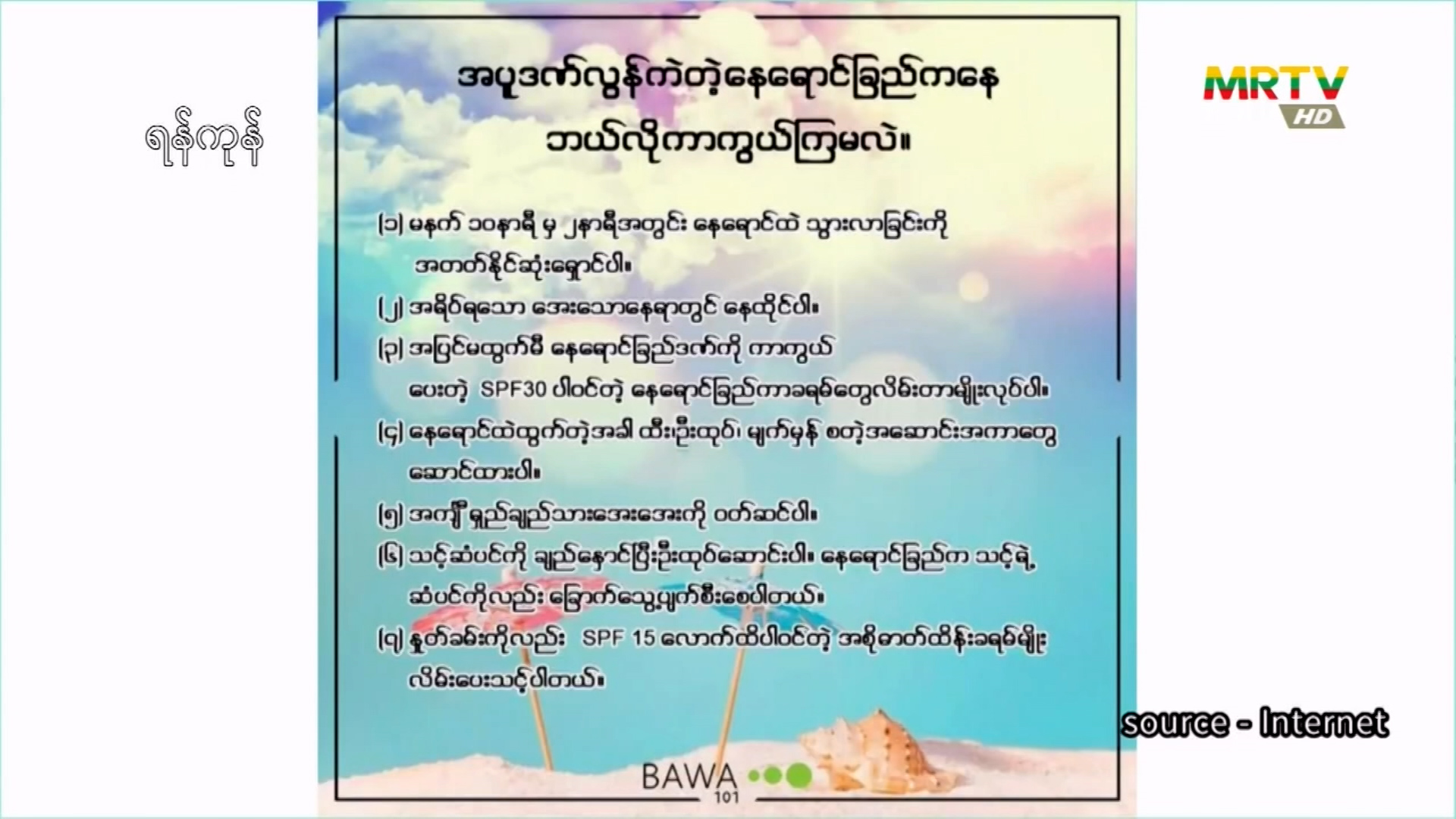 အပူဒဏ်အန္တရာယ်နှင့် ပတ်သက်၍ သတိထားဆင်ခြင်ရန် ရန်ကုန်ပြည်သူ့ဆေးရုံကြီးမှ ပါမောက္ခဆရာဝန်နှင့် တွေ့ဆုံမေးမြန်း