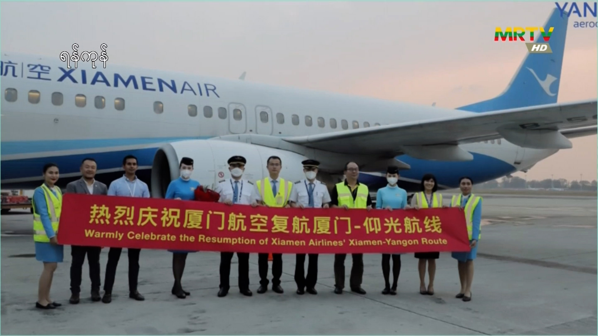 Xiamen Airlines ၏ ရှာ့မန်-ရန်ကုန် တိုက်ရိုက်လေကြောင်းခရီးစဉ်များ ရန်ကုန်အပြည်ပြည်ဆိုင်ရာ လေဆိပ်တွင် ပြန်လည်ပြေးဆွဲ