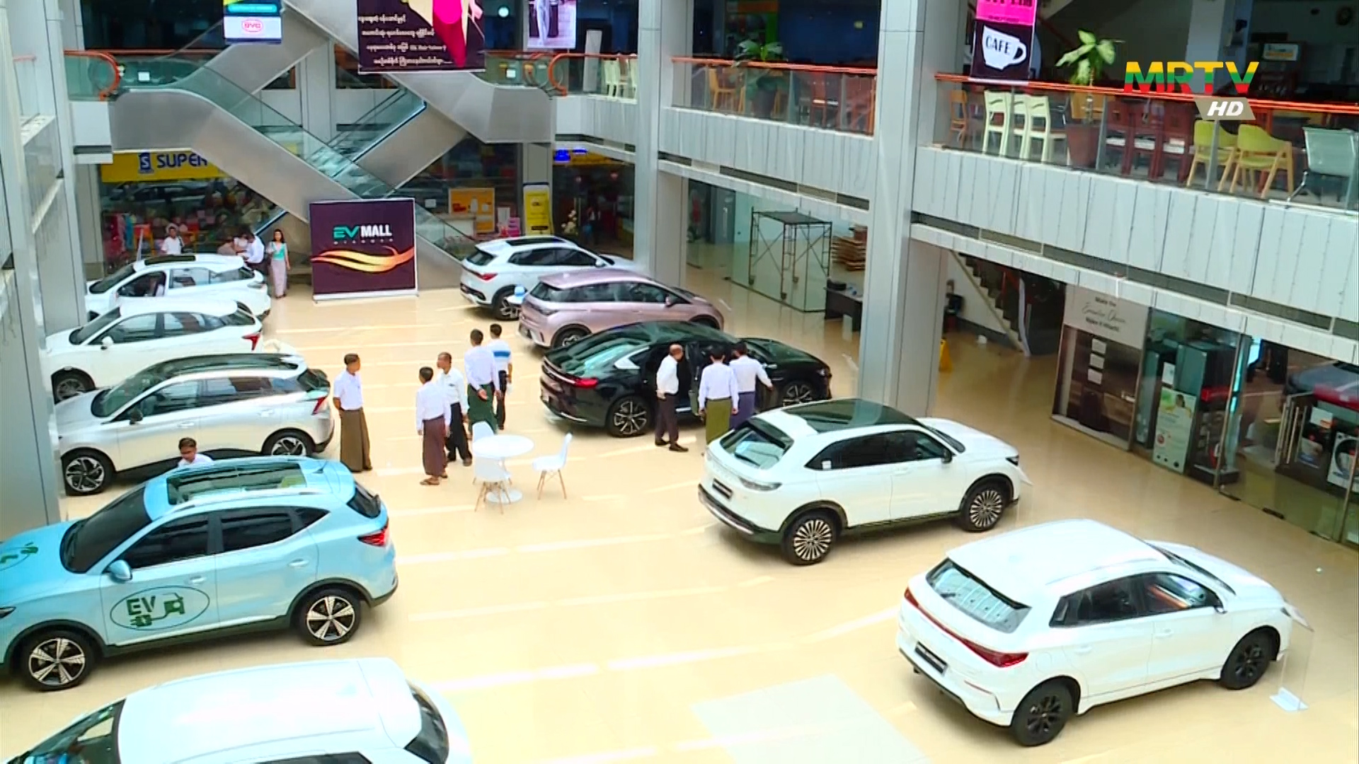 နေပြည်တော်ရှိ Sinma Living Mall ၌ လျှပ်စစ်သုံးယာဉ်များအား အများပြည်သူများ လေ့လာဝယ်ယူနိုင်ရန် EV Mall အဖြစ် ခင်းကျင်းပြသလျက်ရှိ Saturday, April 29, 2023