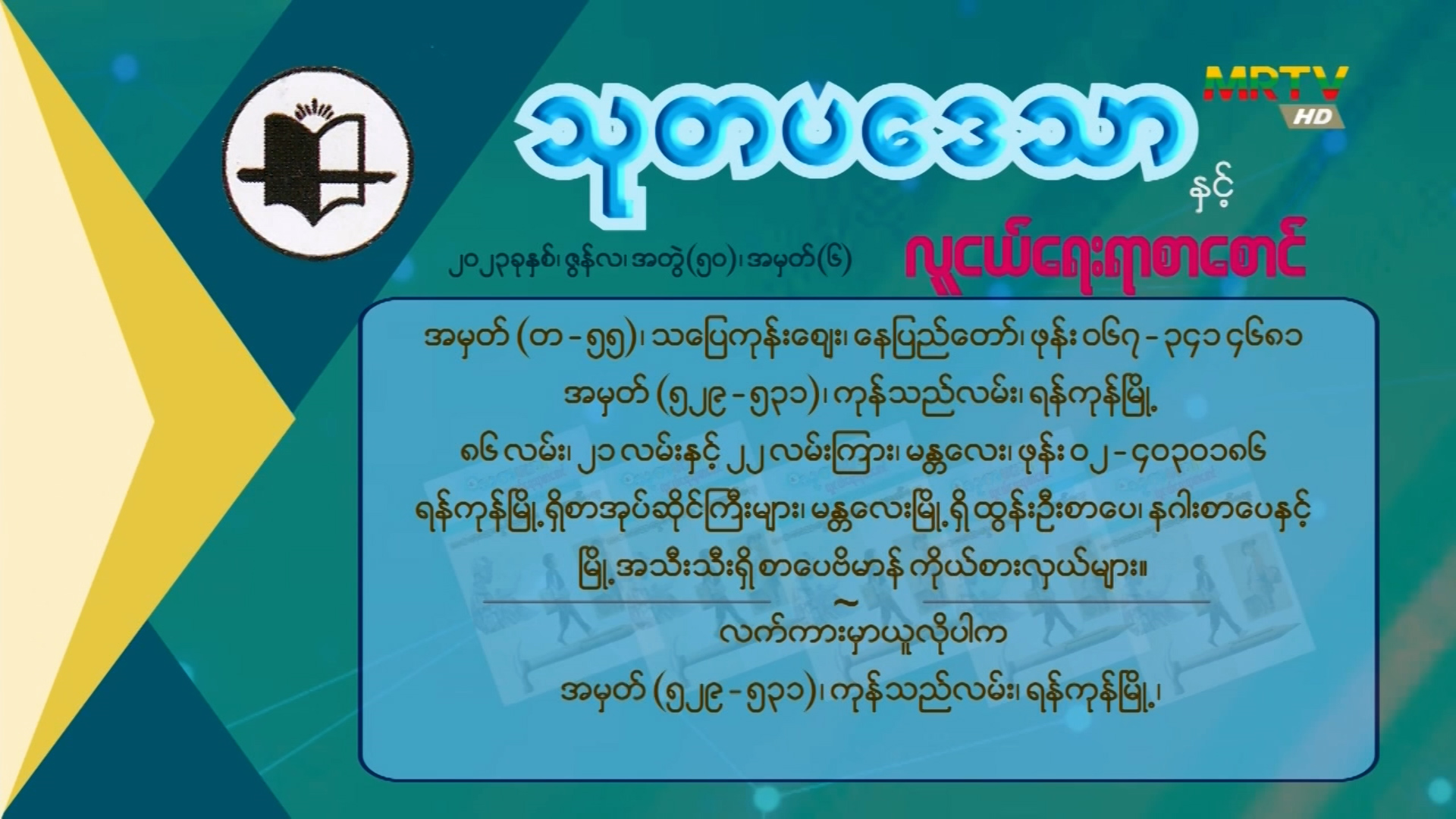 သုတပဒေသာ လူငယ်ရေးရာစာစောင်ကို ရန်ကုန်မြို့၊ နေပြည်တော်နှင့် မန္တလေးမြို့တို့ရှိ စာပေဗိမာန်စာအုပ်ဆိုင်များတွင် ဝယ်ယူရရှိနိုင်ပါသည်။ Tuesday, June 27, 2023