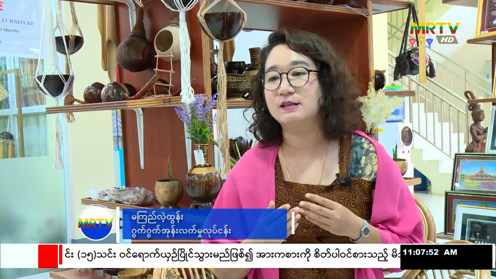 ရုပ်သံမှတ်တမ်းအစီအစဉ် “အုန်းလက်မှုပစ္စည်းများ၏ ပြည်တွင်းပြည်ပဈေးကွက် အခြေအနေ၊ လုပ်ငန်းအဆင့်ဆင့်နှင့်အတူ ဈေးကွက်အလားအလာကို သိရှိရန်အတွက် (ဂွက်ဂွက် အုန်းလက်မှုလုပ်ငန်း)မှ မကြည်လဲ့ထွန်းနှင့် တွေ့ဆုံမေးမြန်း တင်ပြချက်” Friday, November 03, 2023