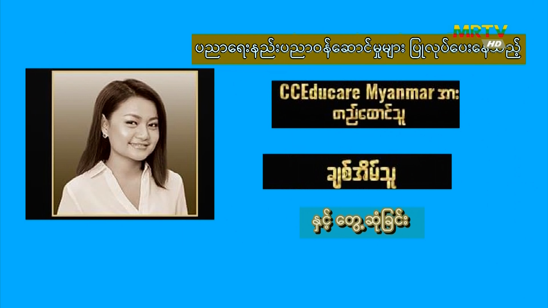 ရုပ်သံမှတ်တမ်း အစီအစဉ် “CCEducare Myanmar တည်ထောင်သူ မချစ်အိမ်သူနှင့် တွေ့ဆုံခြင်း” (အပိုင်း-၂) Friday, May 03, 2024