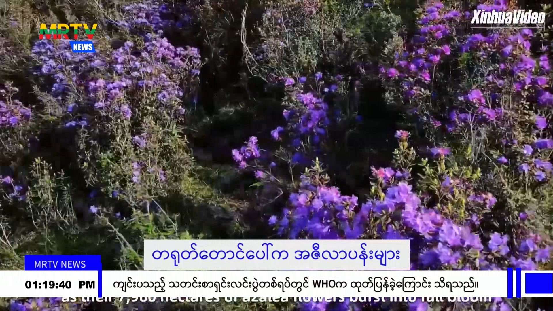 Bird's Eye View (29-6-2024) - တရုတ်တောင်ပေါ်က အဇီလာပန်းများ - ကန္တာရမှသည် အနာဂတ်စိမ်းလန်းရေး - တိမ်တွေပေါ်က ဖန်လင်တံတား - လူရှန်တောင်က တိမ်ပင်လယ် - တရုတ်၏ သစ်မွှေးထုတ်လုပ်မှု - ချန်ဘိုင်တောင်အလှများ Saturday, June 29, 2024