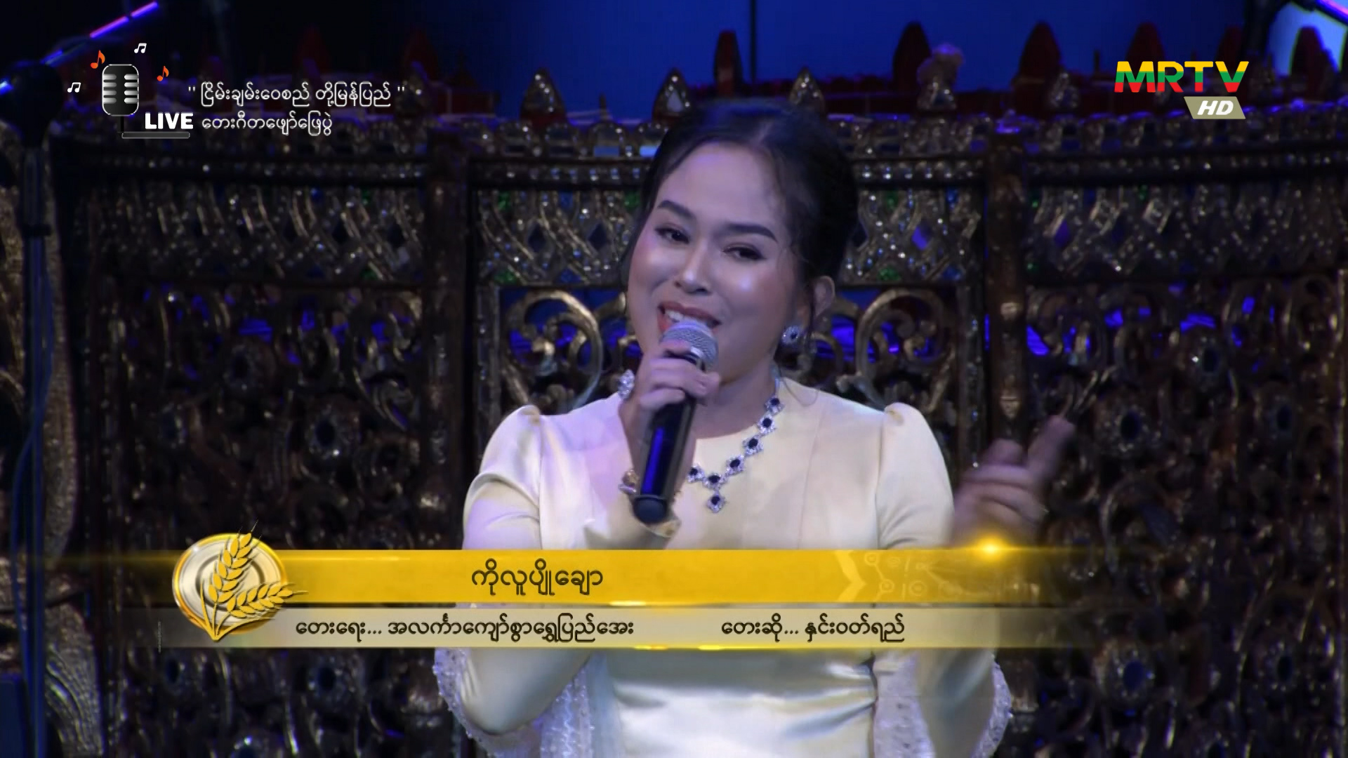 ကိုလူပျိုချော တေးဆို … နှင်းဝတ်ရည် တေးရေး … အလင်္ကာကျော်စွာ ရွှေပြည်အေး