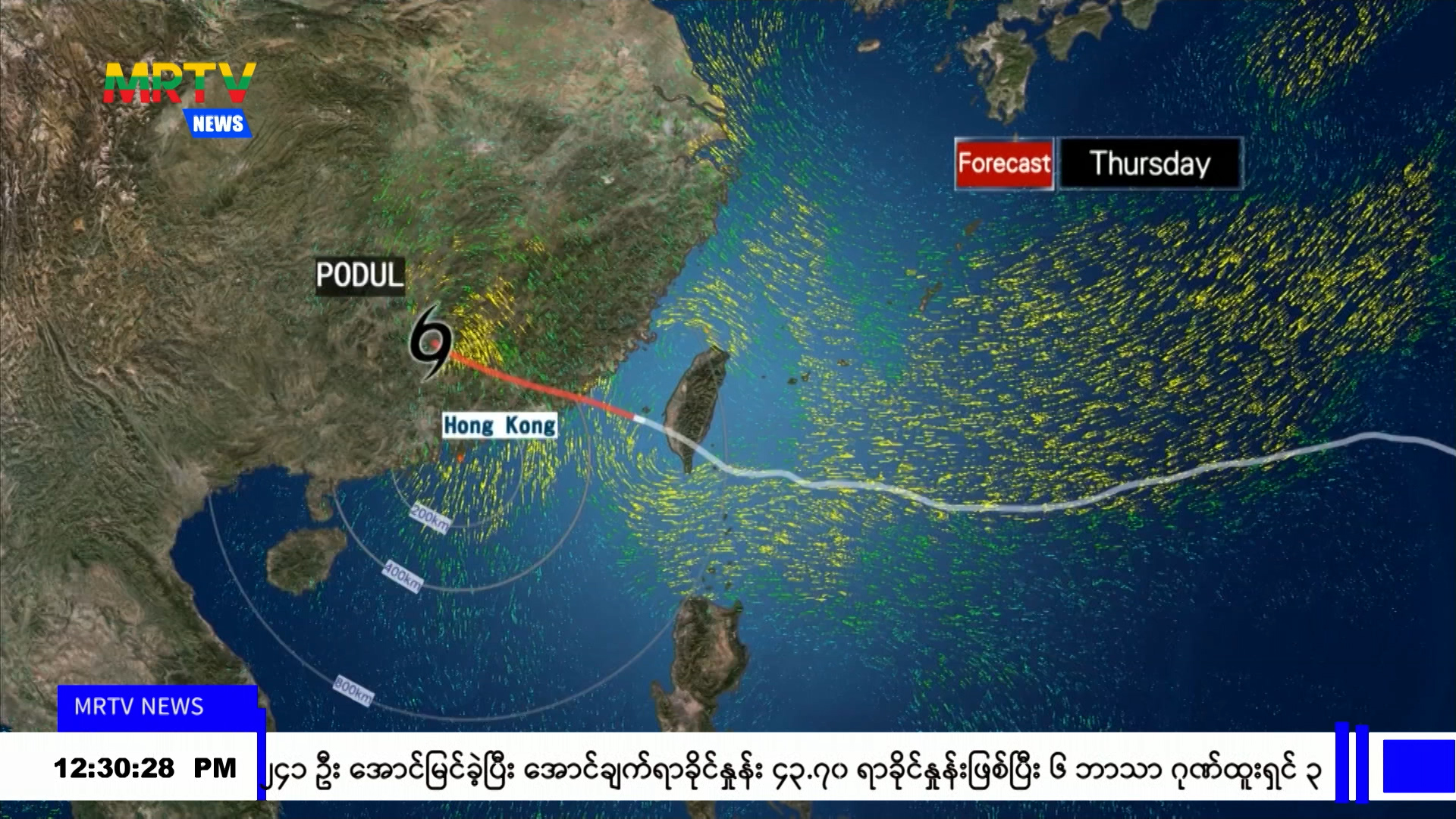 တိုင်ဖွန်း Podul သည် တရုတ်ဟောင်ကောင်အနီးတွင် အားပျော့သွားပြီဖြစ်