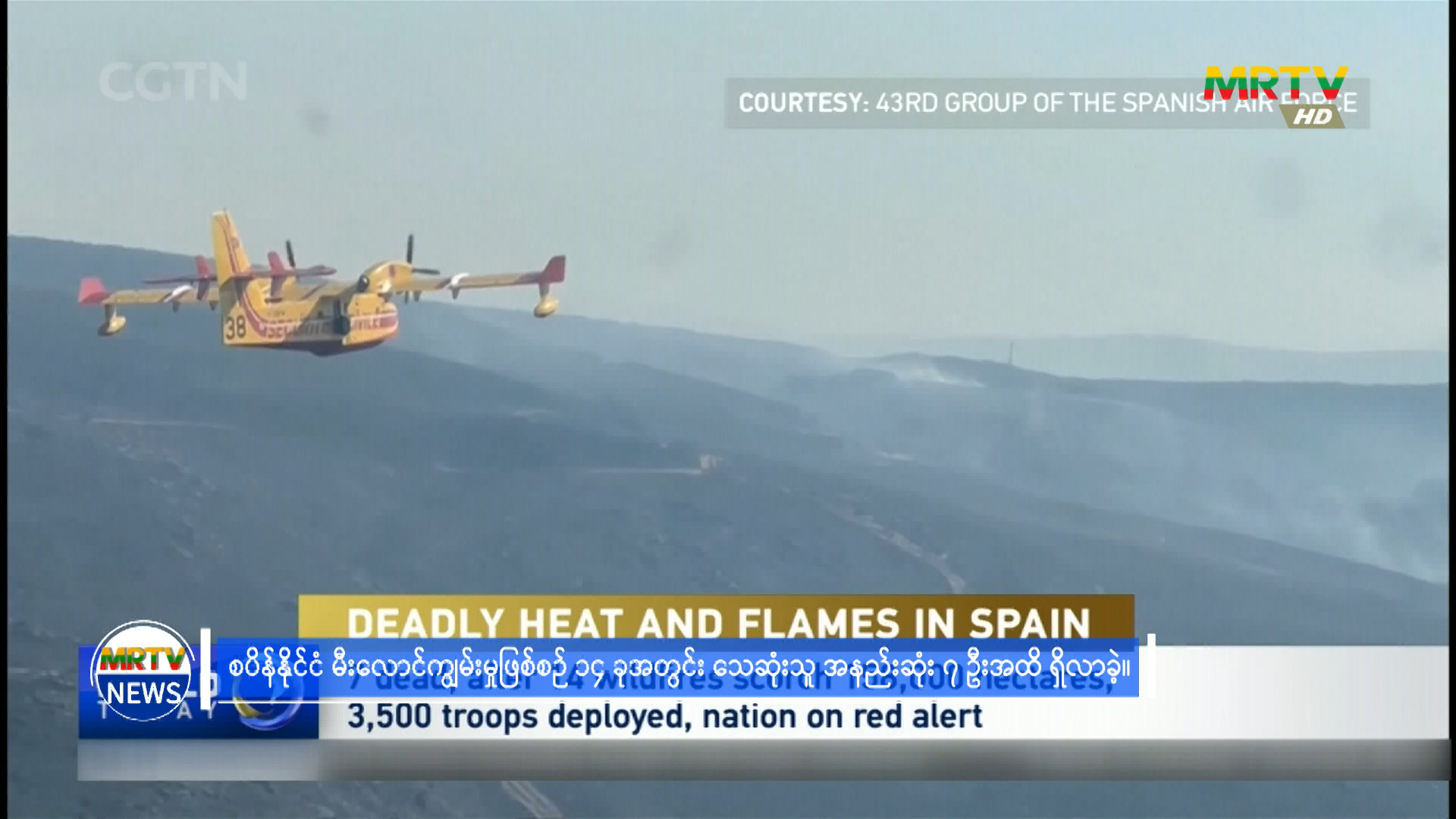စပိန်နိုင်ငံ မီးလောင်ကျွမ်းမှုဖြစ်စဉ် (၁၄)ခုအတွင်း သေဆုံးသူ အနည်းဆုံး (၇)ဦးအထိ ရှိလာခဲ့ Monday, August 18, 2025