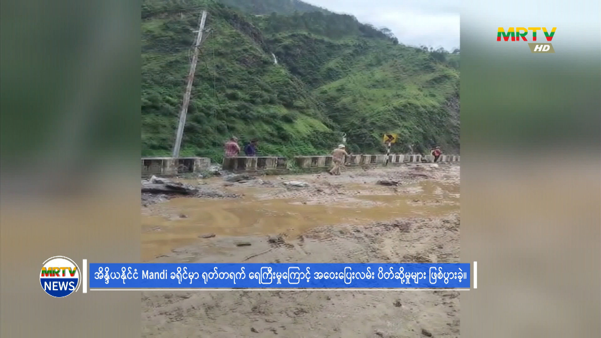 အိန္ဒိယနိုင်ငံ၊ Mandi ခရိုင်၌ ရုတ်တရက်ရေကြီးမှုကြောင့် အဝေးပြေးလမ်းပိတ်ဆို့မှုများ ဖြစ်ပွား Tuesday, August 19, 2025