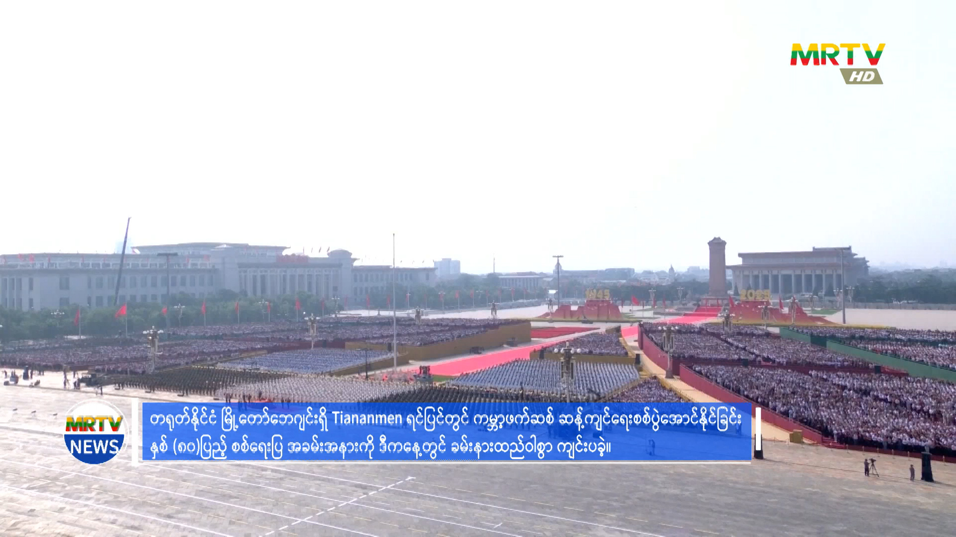 တရုတ်နိုင်ငံမြို့တော် ပေကျင်းရှိ Tiananmen ရင်ပြင်တွင် ကမ္ဘာ့ဖက်ဆစ်ဆန့်ကျင်ရေးစစ်ပွဲအောင်နိုင်ခြင်း နှစ် (၈၀)ပြည့် စစ်ရေးပြအခမ်းအနားကို ခမ်းနားထည်ဝါစွာကျင်းပ Wednesday, September 03, 2025