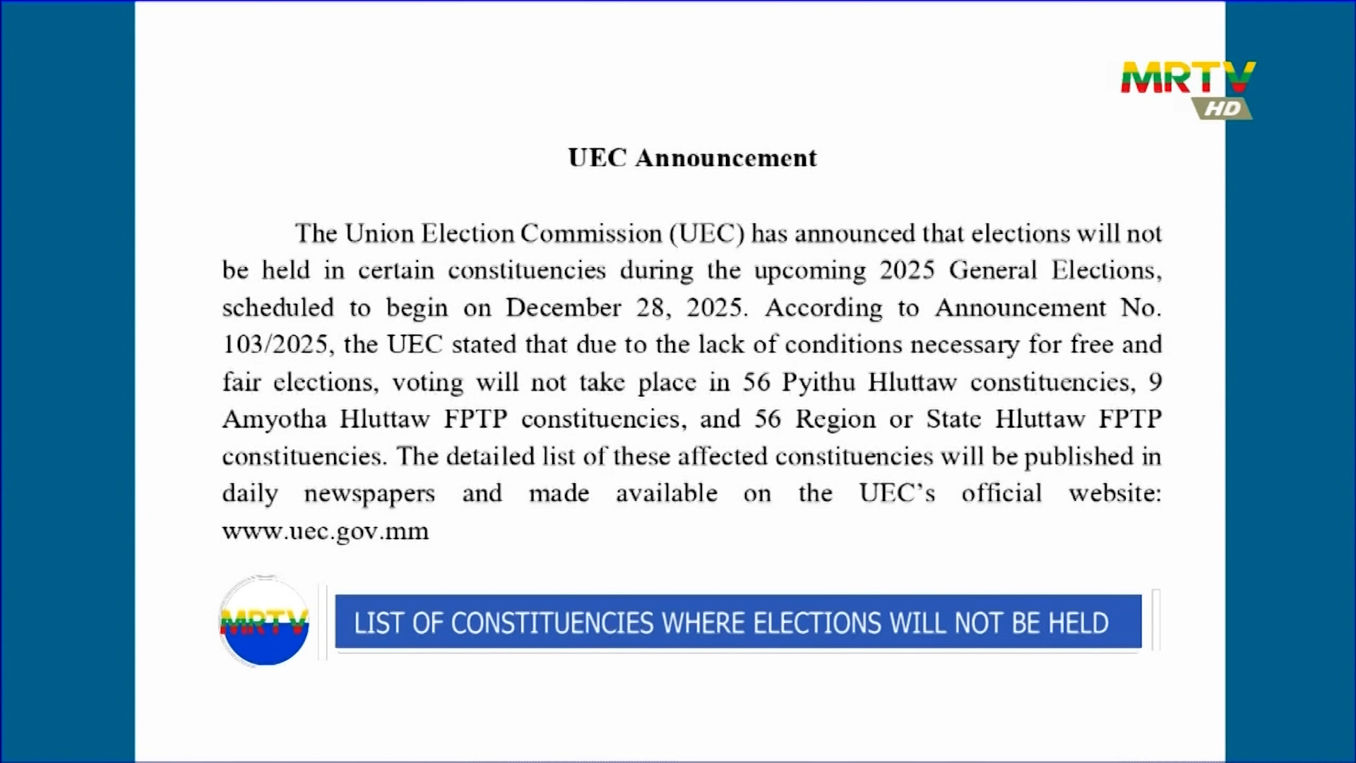 Hluttaw Channel Schedule