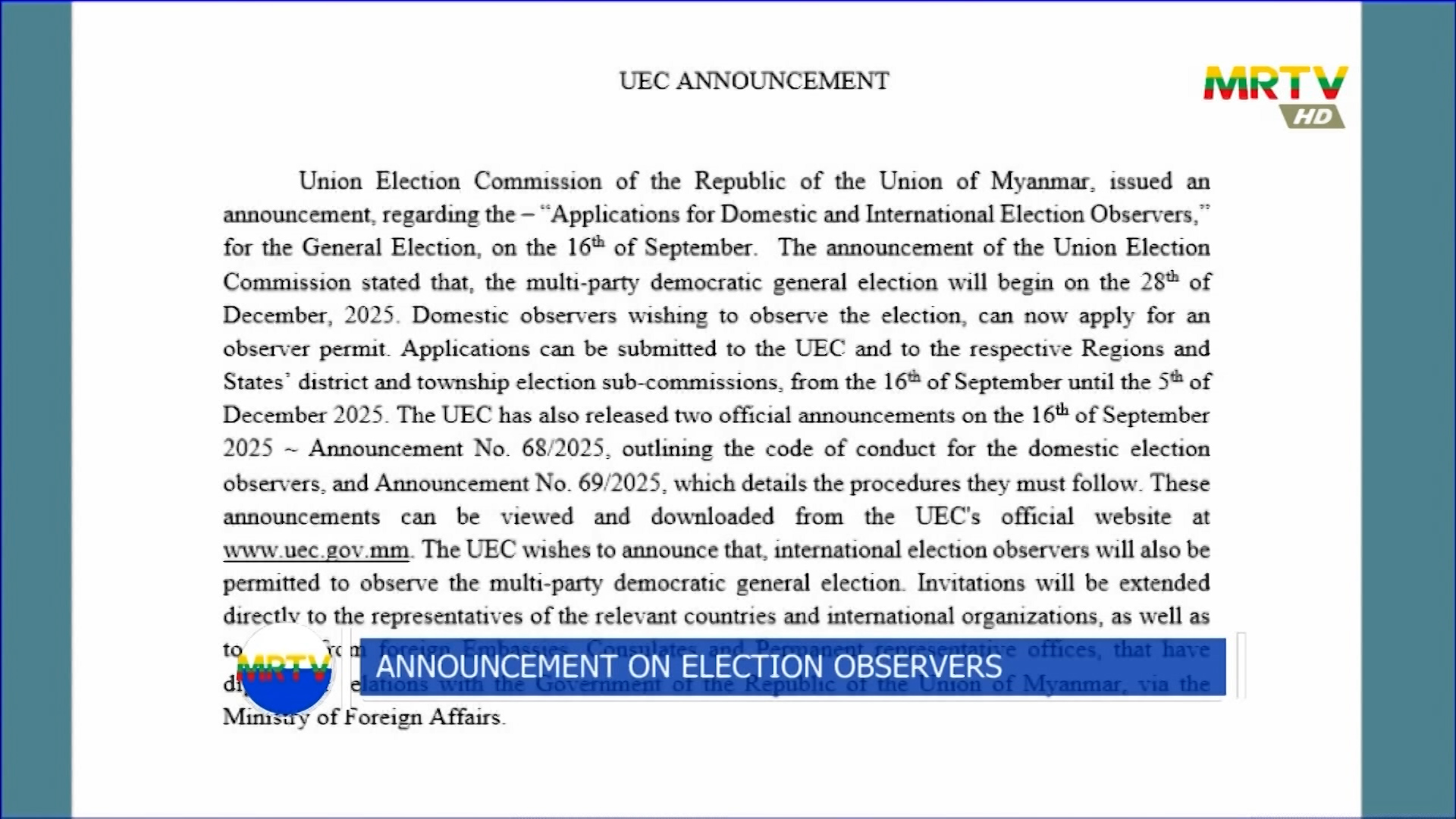 Announcement on Election Observers