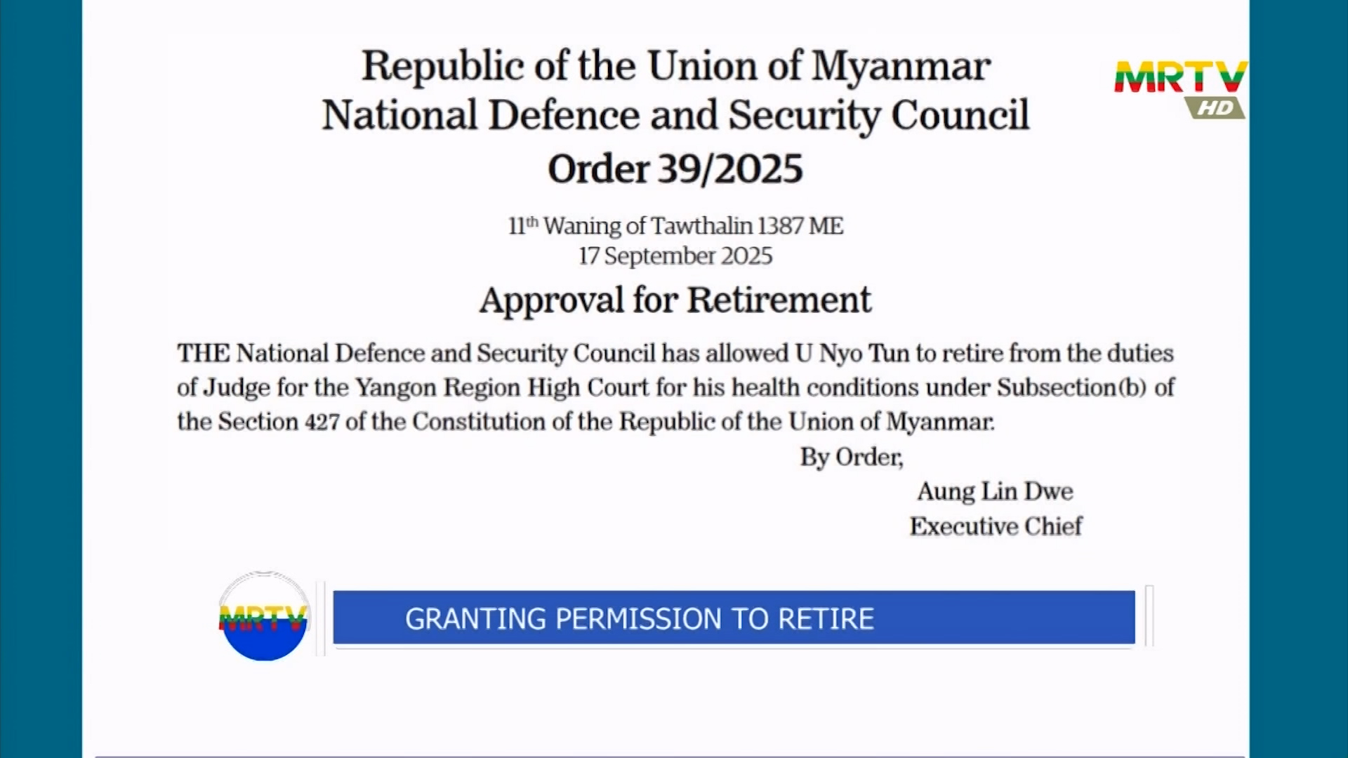 ပြည်ထောင်စုသမ္မတမြန်မာနိုင်ငံတော် ယာယီသမ္မတ နိုင်ငံတော်လုံခြုံရေးနှင့် အေးချမ်းသ…
