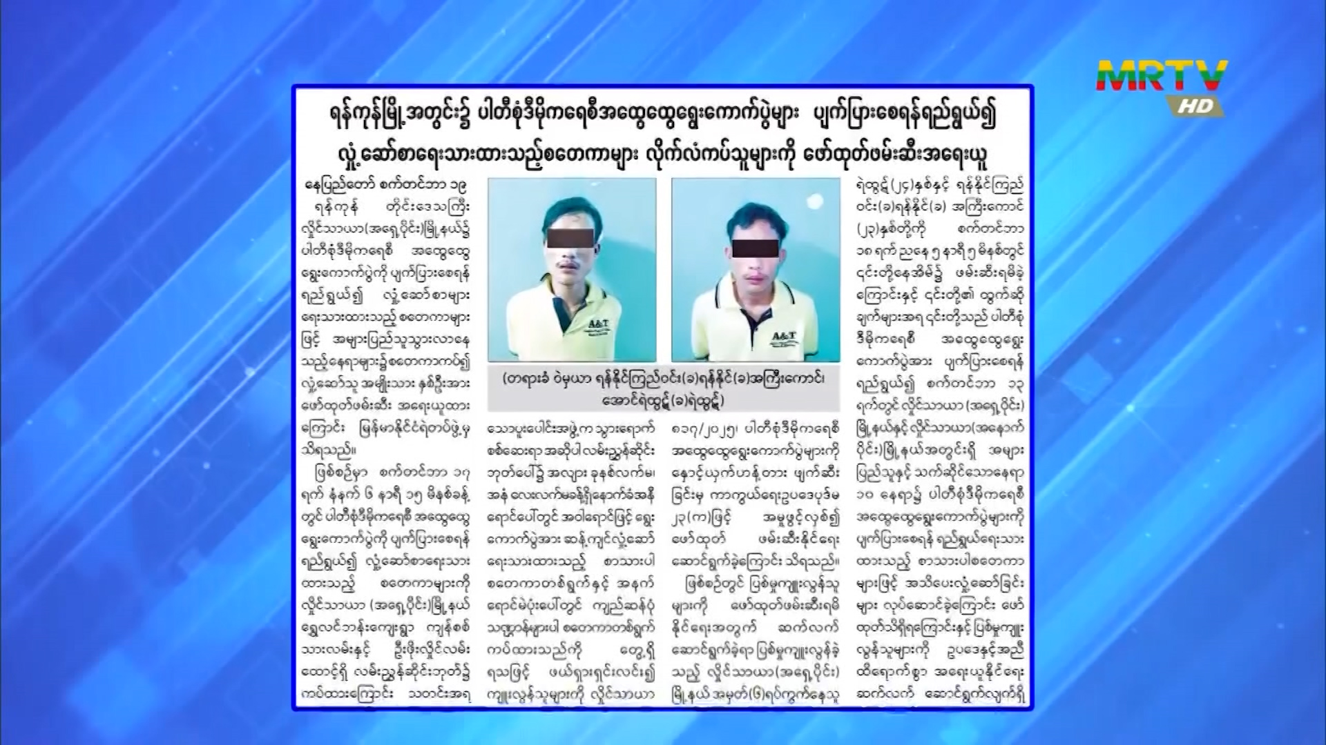 ရန်ကုန်မြို့အတွင်း၌ ပါတီစုံဒီမိုကရေစီ အထွေထွေရွေးကောက်ပွဲများ ပျက်ပြားစေရန် ရည်ရွယ်၍ လှုံ့ဆော်စာရေးသားထားသည့် စတေကာများ လိုက်လံကပ်သူများကို ဖော်ထုတ်ဖမ်းဆီး အရေးယူ Saturday, September 20, 2025