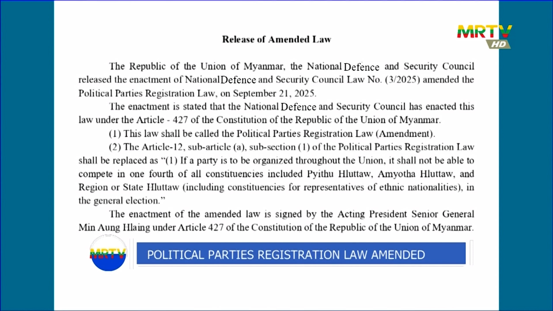 Political Parties Registration Law amended