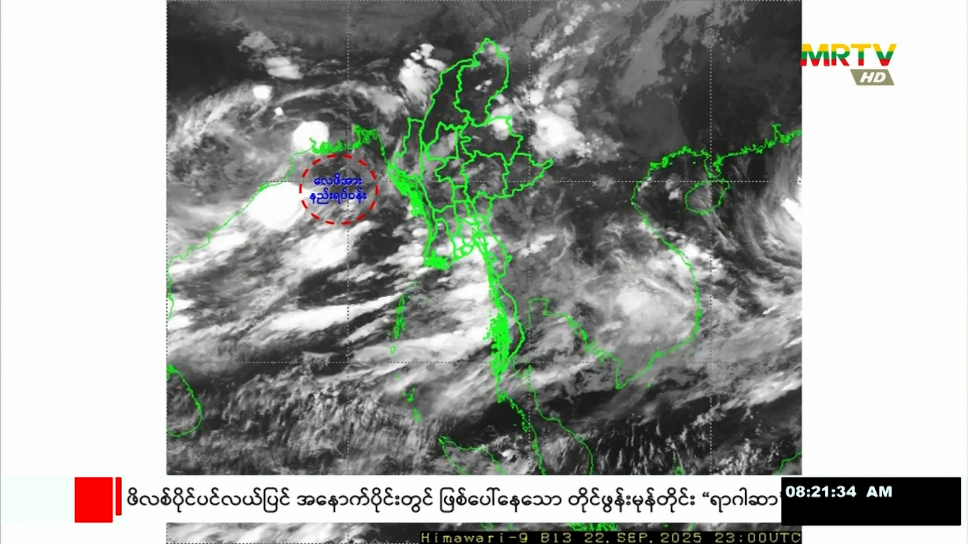 မိုးလေဝသနှင့် ဇလဗေဒညွှန်ကြားမှုဦစီးဌာနမှ လေဖိအားနည်းရပ်ဝန်းအခြေအနေထုတ်ပြန် (မြန်မာစံတော်ချိန် နံနက် (၇း၃၀)နာရီအချိန်ထုတ်ပြန်ချက်) Tuesday, September 23, 2025