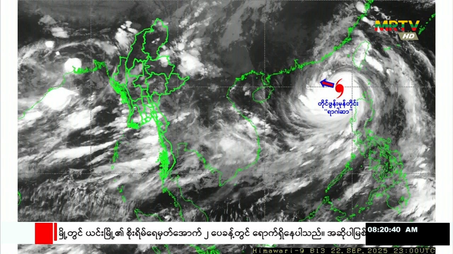 မိုးလေဝသနှင့် ဇလဗေဒညွှန်ကြားမှုဦစီးဌာနမှ တိုင်ဖွန်းမုန်တိုင်း “ရာဂါဆာ” အခြေအနေသတင်းအမှတ်စဉ် (၀၂/၂၀၂၅)ထုတ်ပြန် (မြန်မာစံတော်ချိန် နံနက် (၇း၀၀)နာရီအချိန်ထုတ်ပြန်ချက်) Tuesday, September 23, 2025