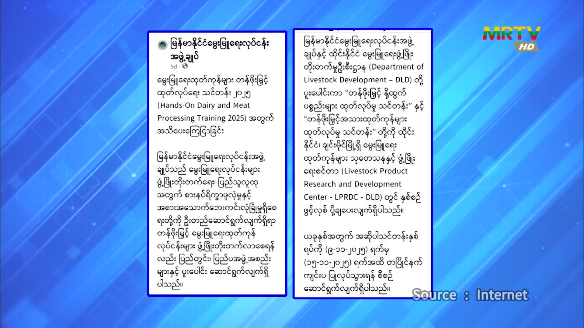မွေးမြူရေးထုတ်ကုန်များ တန်ဖိုးမြှင့်ထုတ်လုပ်ရေးသင်တန်း ၂၀၂၅