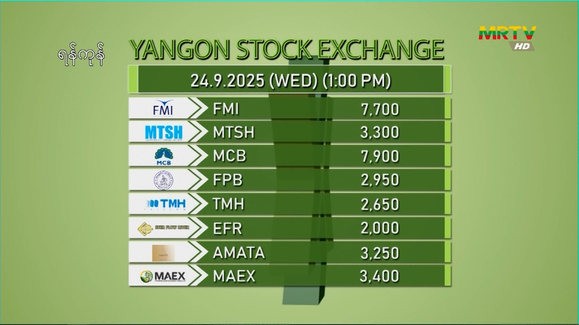 Yangon Stock Exchange ဈေးကွက် အခြေအနေ(၂၄-၉-၂၀၂၅)