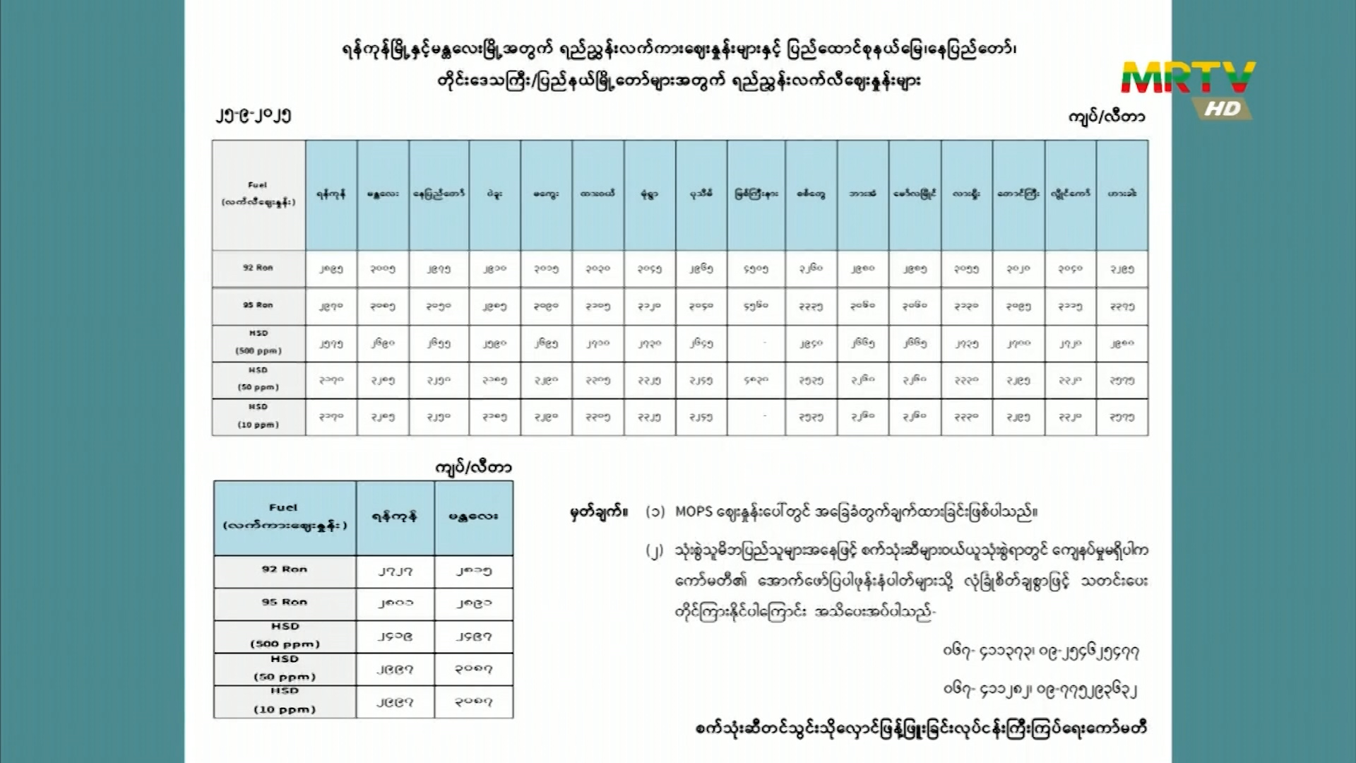 စက်သုံးဆီတင်သွင်း/ သိုလှောင်/ ဖြန့်ဖြူးခြင်းလုပ်ငန်းကြီးကြပ်ရေးကော်မတီမှ တိုင်းဒေသကြီးနှင့် ပြည်နယ်အလိုက် စက်သုံးဆီရည်ညွှန်းဈေးနှုန်းများအား စက်တင်ဘာလ (၂၅)ရက်နေ့တွင် ထုတ်ပြန်ကြေညာ Thursday, September 25, 2025